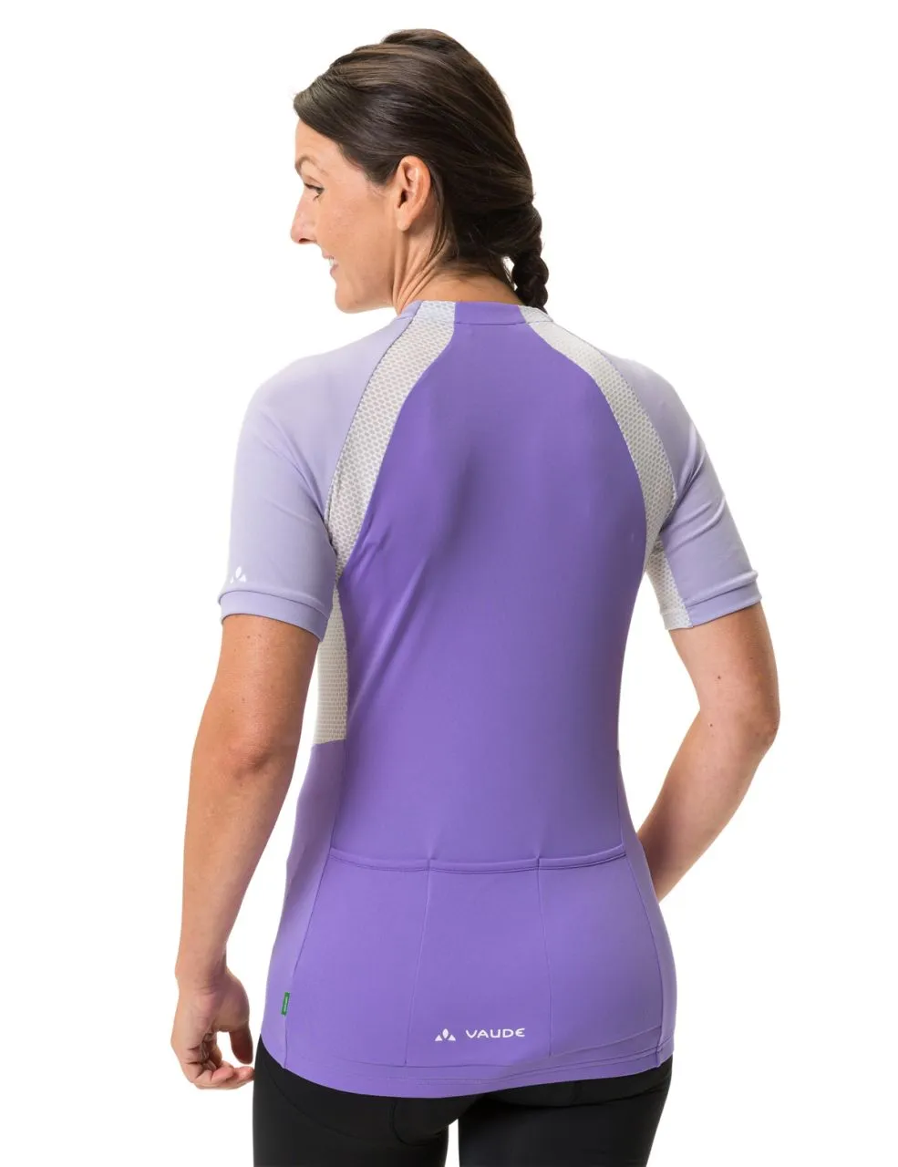 En forme en toutes circonstances. Ce maillot est conçu pour les hommes endurants.Le maillot de vélo performance au look moderne est doté d’un col montant et d’un zip. Son matériau fonctionnel léger et respirant et ses empiècements en maille sous le bras assurent un confort optimal, que tu sois un adepte des sorties courtes ou longues. Ton vêtement de pluie, une barre énergétique ou des objets de valeur se rangent facilement dans les trois poches arrière. Le label Green Shape de VAUDE garantit un produit écologique, fonctionnel et fabriqué dans des matériaux durables.