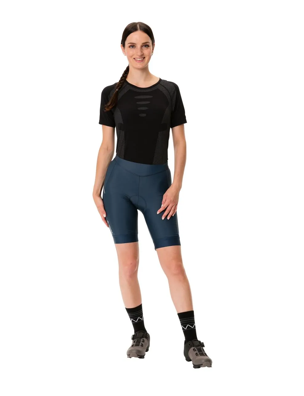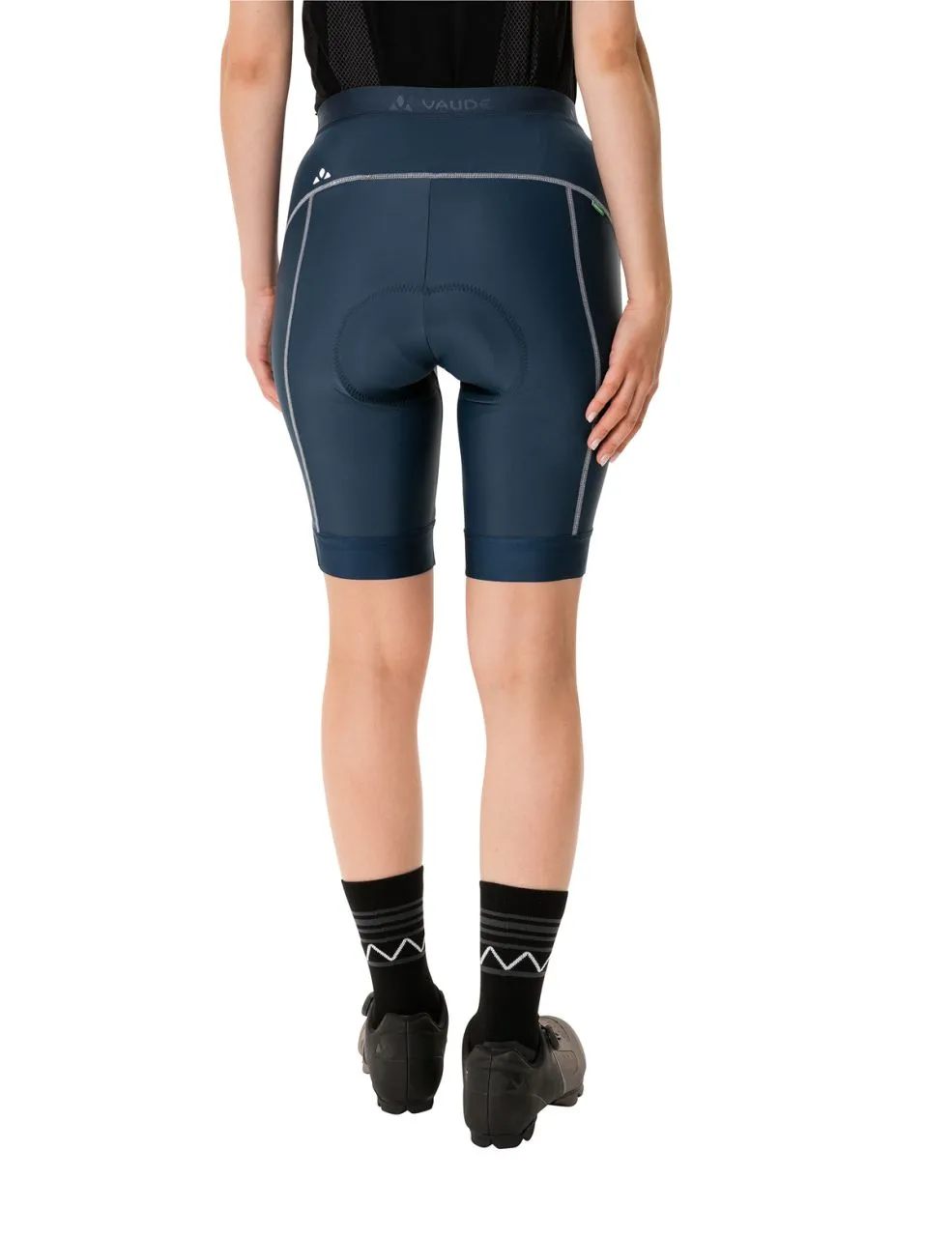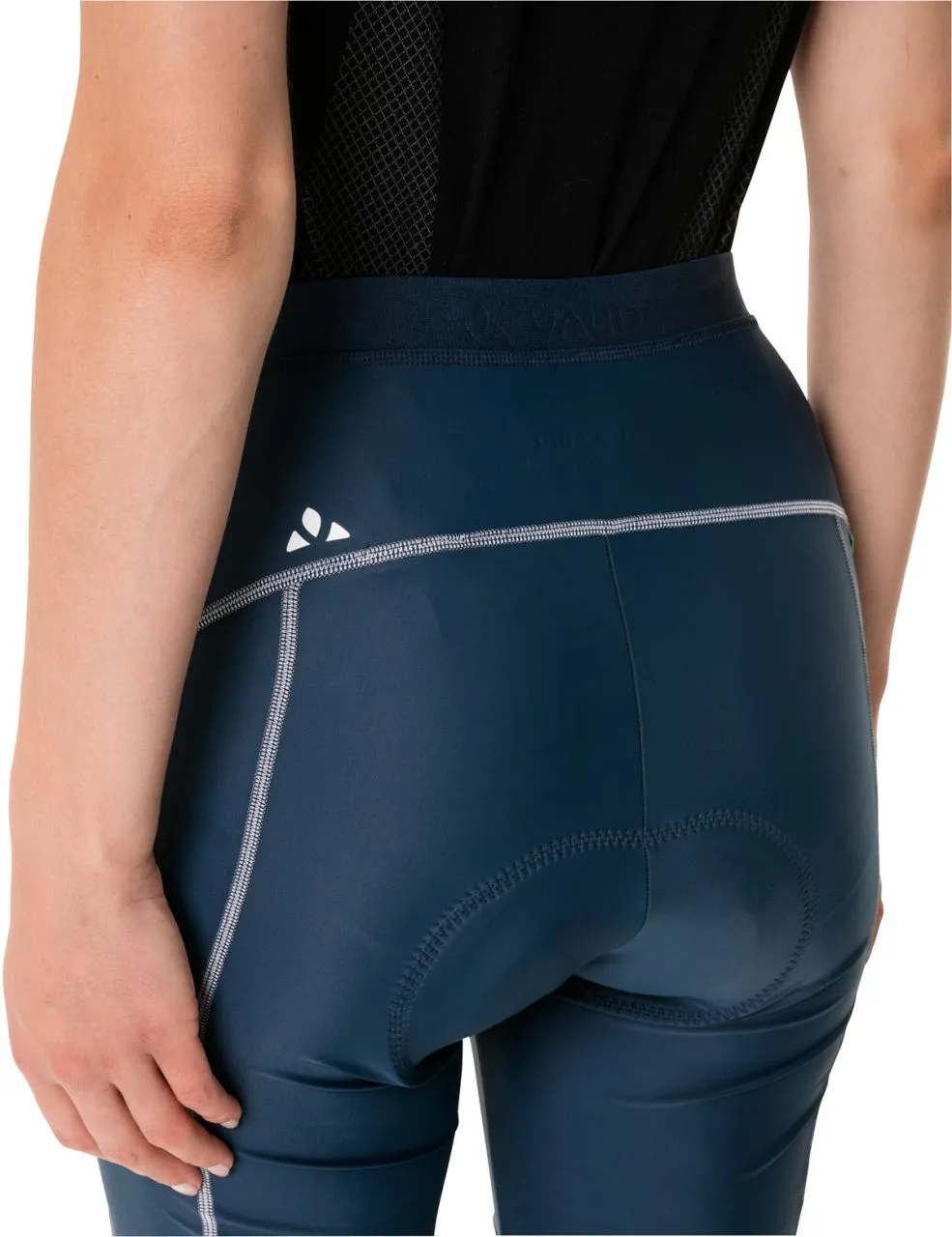Pantalon de « (re)cyclisme » pour les sorties à vélo axées sur la performance. L’ensemble conçu dans le respect de l’environnement présente une coupe en 6 lés ergonomique ainsi que des coutures et une ceinture plates. Le rembourrage de fessier sans couture Advanced Cycling Green garantit une coupe bien ajustée ainsi qu’une respirabilité optimale, et assure un haut niveau de confort en selle grâce à la combinaison de mousses de différentes densités. Le rembourrage de fessier est fabriqué dans un mélange de matières recyclées d’origine biologique. Le matériau principal de ce pantalon de cyclisme pour femme est fabriqué à base de polyamide recyclé obtenu au cours d’un processus d’upcycling à partir de textiles tels que p. ex. des filets de pêche usagés. Ce pantalon n’offre ainsi pas seulement un confort maximal sur le circuit, mais contribue aussi à la préservation de l’environnement. Le label Green Shape de VAUDE garantit un produit écologique, fonctionnel et fabriqué dans des matériaux durables.