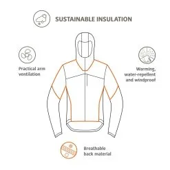 Veste multisport légère et élastique pour toutes les mi-saisons de l’année. Armés de la veste hybride haut de gamme au look sportif et actif, les vététistes sont sur chaque trail partout chez eux. Chaude et légère, la veste hybride de fabrication écologique en polyester recyclé et d’aspect color block offre une bonne protection contre le froid grâce au rembourrage isolant S.Cafe® sur l’avant et les épaules. Dotée d’empiècements en matière stretch étanche, la veste hybride est idéale pour les vététistes et les e-bikers qui ne mettent pas le nez dehors qu’en automne et en hiver. Une capuche décontractée offre une protection imperméable supplémentaire à la mi-saison. Un imprimé décoratif à l’avant lui confère un aspect original. La veste All Year Moab Jacket II est parfaitement assortie au pantalon All Year Moab ZO Pants II et bénéficie de la certification selon la norme environnementale la plus stricte bluesign®. Le label Green Shape de VAUDE garantit un produit écologique, fonctionnel et fabriqué dans des matériaux durables.