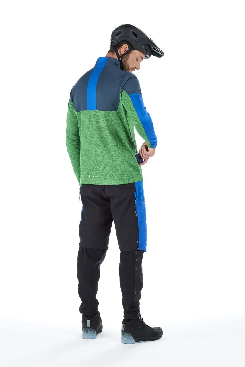 Le maillot Men’s All Year Moab Shirt est un maillot multisport pour chaque saison et s’impose quand il s’avère difficile de choisir entre un maillot et une veste. Ce maillot à manches longues bien chaud aspect color block doté d’empiècements étanches au vent sur l’avant assure une protection efficace contre le froid et le vent, tout en offrant une respirabilité et une légèreté nettement supérieures à une veste en softshell. Sa matière moelleuse en stretch performance offre en outre un confort au porter maximum. Avec son zip frontal continu et sa poche arrière, ce maillot de cyclisme homme est idéal pour les vététistes et les e-bikers qui ne mettent pas seulement le nez dehors au printemps et en été. Ce vêtement composé majoritairement de polyester recyclé est facile d’entretien, sèche rapidement et se porte très agréablement sur la peau. Le label Green Shape de VAUDE garantit un produit écologique, fonctionnel et fabriqué dans des matériaux durables certifiés bluesign®.