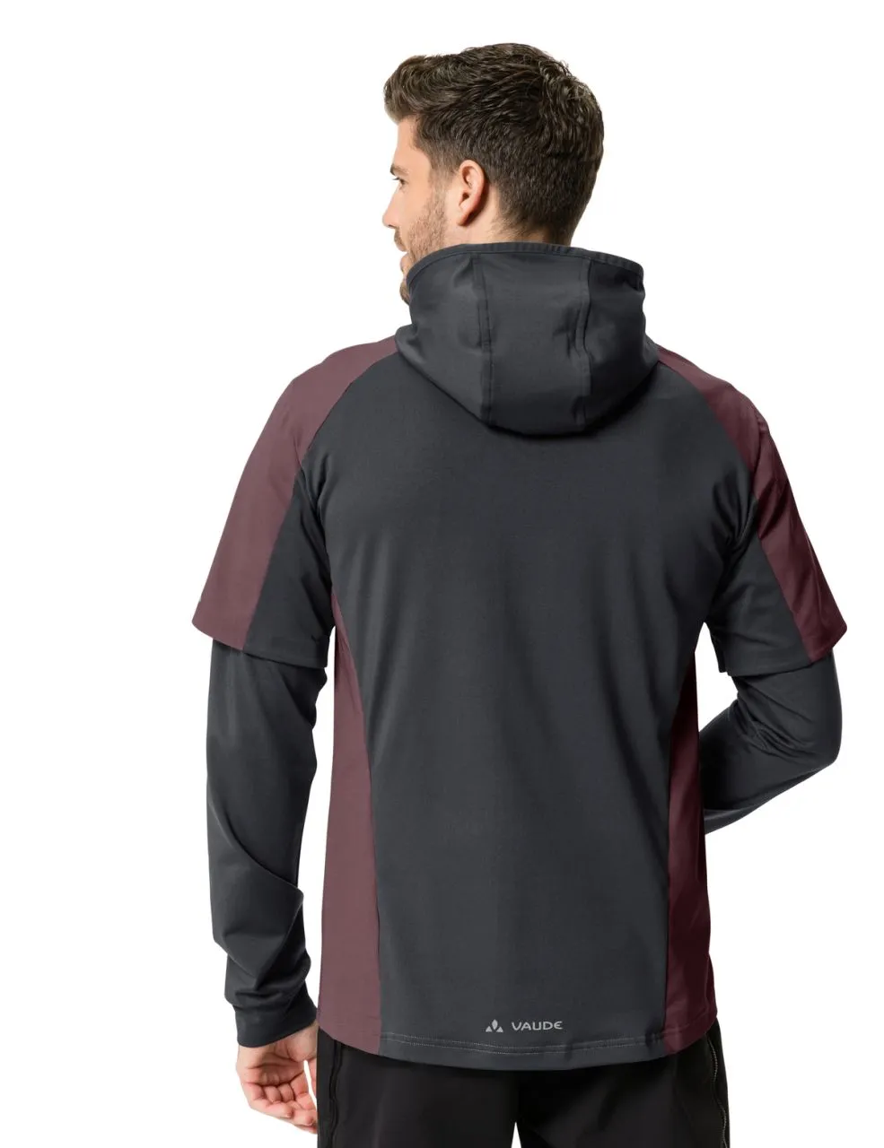 Le sweat à capuche Moab FZ Hoody garantit un look sympa à la mi-saison ! Ce maillot cycliste homme au design sobre et hautement fonctionnel est un produit combiné pour les vététistes qui veulent se lancer sur les pistes hors du printemps et de l’été. Le léger maillot multisport en polyester recyclé offre une liberté de mouvement totale grâce à sa haute teneur en stretch. La matière à l’avant et au haut des bras est fortement coupe-vent et protège de l’hypothermie grâce à la coupe allongée du dos et des bras. La capuche attenante à la bordure élastique repousse efficacement le vent et se porte sous le casque. Les coutures aux épaules sont décalées vers le bas à l’arrière pour éviter les frottements lors du port d’un sac à dos. La matière stretch grattée douce en polyester recyclé est ultra respirante et régule l’humidité, tout en offrant un entretien facile et un séchage rapide. Elle est très agréable au contact de la peau et dotée de la finition déperlante et antisalissures Eco Finish sans PFC. En tant que membre élevé au rang de Leader de l’organisme indépendant Fair Wear, VAUDE s’engage en faveur de conditions de travail et de salaires équitables. Ce produit est de plus climatiquement neutre : les émissions issues des matériaux, des processus de fabrication et du transport ont été déterminées de manière holistique et systématiquement réduites. Les émissions actuellement inévitables ont été entièrement compensées par l’organisation indépendante à but non lucratif « myclimate ».