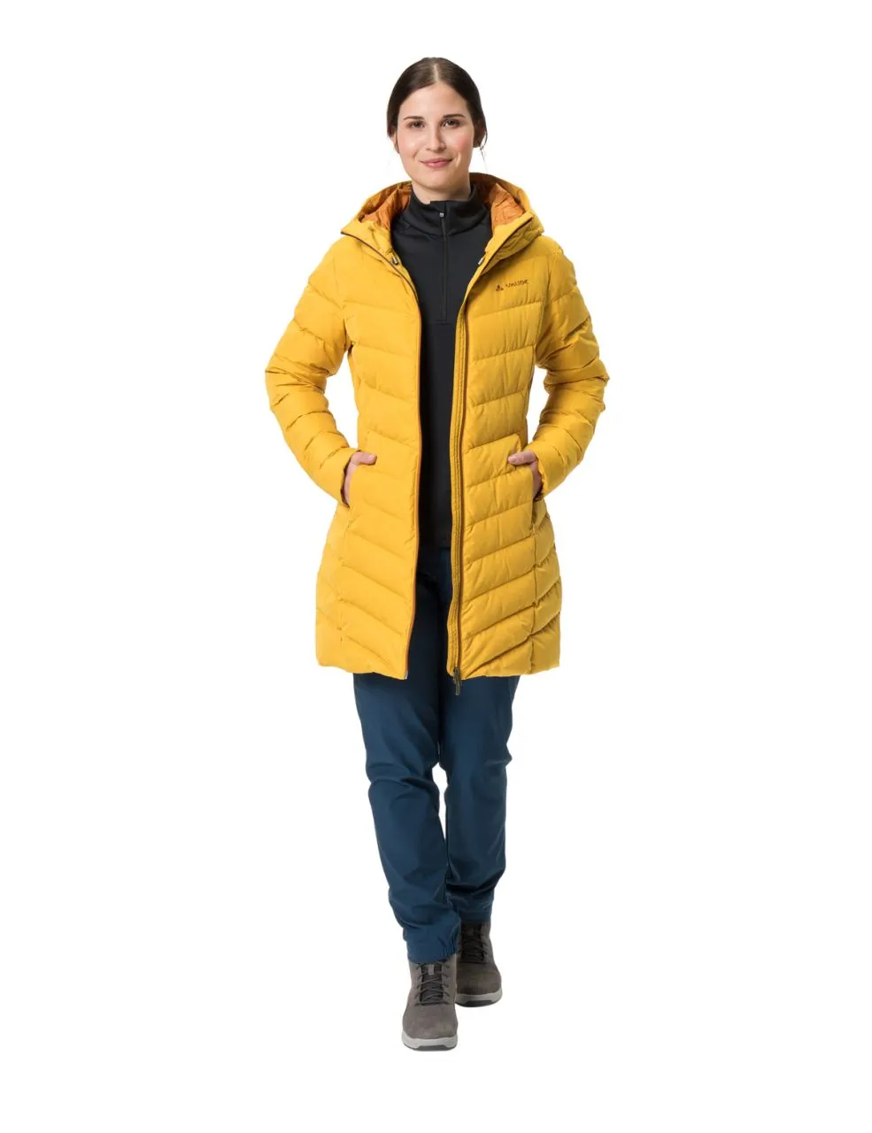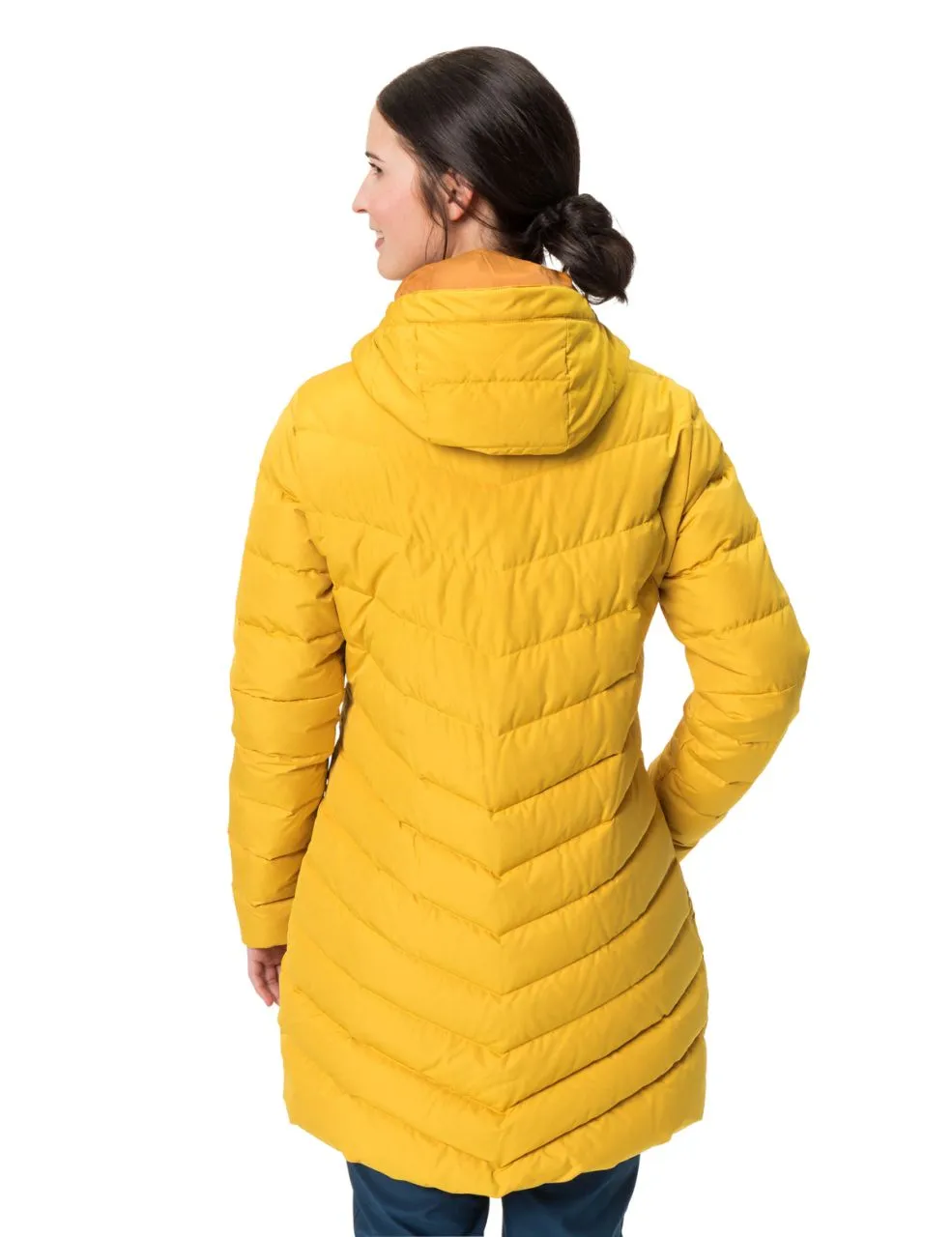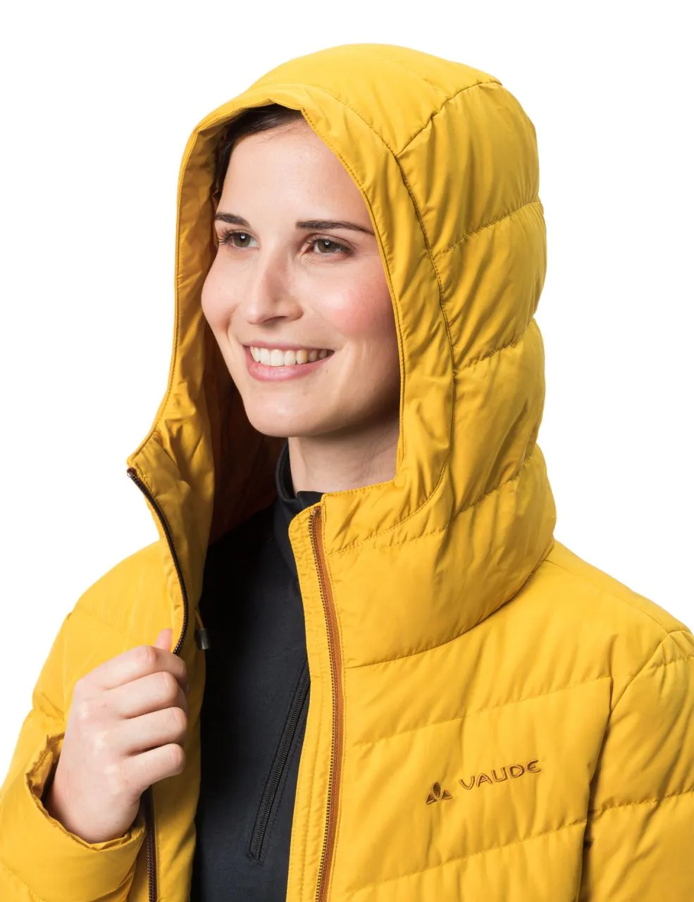 Avec lui, l’hiver est véritablement placé sous le signe de l’élégance : le manteau d’hiver pour dames haut de gamme satisfait toutes les exigences en termes de fonctionnalité et d’esthétique. Températures glaciales ou rafales de vent glacé, ce manteau en duvet de canard recyclé est prêt à affronter tous les temps en toute élégance. Le matelassage spécial du manteau écologique Women’s Annecy Down Coat ne se contente pas de séduire sur le plan visuel, mais garantit que l’isolation haut de gamme ne glisse pas et ne s’agglutine pas. Le manteau reste bien protégé même en cas de pluies fines grâce à l’imperméabilisation sans fluorocarbures (PFC) Eco Finish respectueuse de l’environnement. Un manteau sensationnel pour la ville et les loisirs, pour déambuler entre les échoppes du marché de Noël, en balade en forêt ou pour se rendre tous les jours au travail. La capuche doublée et ajustable maintient les oreilles bien au chaud et les poignets doux et élastiques ne laissent pas passer le vent froid. Ce manteau d’hiver est imperméabilisé avec la finition Eco Finish, écologique et sans fluorocarbures (PFC). Le label Green Shape de VAUDE garantit un produit écologique, fonctionnel et fabriqué dans des matériaux durables certifiés bluesign®.