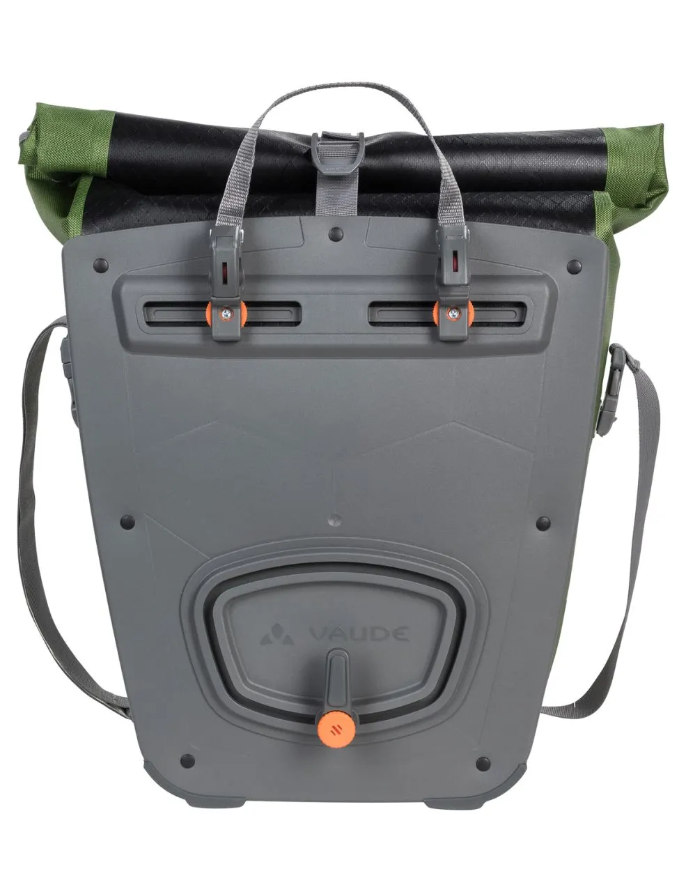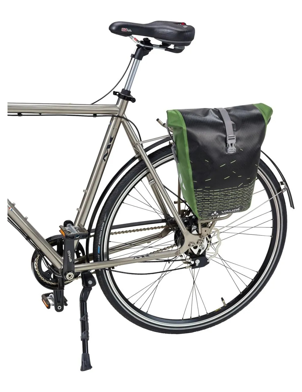 Partez à la découverte du monde ! Sacoche pour roue arrière, parfaitement étanche, avec imprimé discret, en matière robuste et sans PVC, fabriquée de manière climatiquement neutre sur le site allemand du siège de VAUDE près du Lac de Constance. Elle peut être ajustée à la taille souhaitée et rendue parfaitement imperméable à l’eau grâce à sa fermeture en papillote. Un sous-compartimentage permet une meilleure organisation. La sacoche cycliste est fixée grâce au système QMR 2.0 et à une plaque stable, à gauche et à droite du porte-bagage arrière. Elle est rapidement ajustable grâce à de petits boutons et peut être installée et enlevée facilement. Grâce à un simple cadenas, elle peut être attachée directement au crochet QMR. Avec des éléments réfléchissants. Ce modèle peut être combiné avec les sacoches accessoires pratiques : Toolbag Back, Sortyour Back, Addita Bag. Dans la livraison : 1 sacoche à fixer à gauche ou à droite sur le porte-bagages.