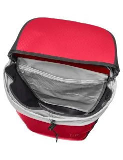 La sacoche de vélo pour cycliste respectueux du climat : Aqua Back Pro Single est fabriquée en toile de bâche robuste et sans PVC sur le site allemand de VAUDE à Tettnang et accompagne de nombreuses virées à vélo pendant de longues années. La sacoche est pourvue d’éléments réfléchissants imprimés, absolument imperméable et peut s’ouvrir et se fermer rapidement grâce à la fermeture à rabat. Une sacoche interne supplémentaire assure une meilleure organisation et l’espace de rangement de 26 l de volume est suffisant. La plaque dorsale écologique est entièrement composée de matériau recyclé. Une matière première durable de nouvelle génération est ainsi obtenue des emballages plastiques collectés auprès des ménages allemands qui sont soumis à un procédé de recyclage innovant. La plaque dorsale ultra stable ainsi fabriquée est munie d’un système QMR 2.0 de manipulation aisée afin de fixer et de retirer d’un seul geste la sacoche pouvant se fixer à gauche ou à droite sur le porte-bagages arrière. La fixation est ajustable grâce à des molettes aisément manipulables et s’adapte ainsi à tout porte-bagages. La sacoche peut être verrouillée sur le vélo avec le système de fixation QMR 2.0 (avec p. ex. un cadenas Abus 145/10, non compris dans la livraison). Le label Green Shape de VAUDE garantit un produit écologique, fonctionnel et fabriqué dans des matériaux durables. Compris dans la livraison : 1 sacoche