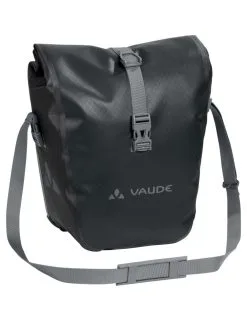 A la découverte du monde ! Cette sacoche étanche pour roue avant, en bâche résistante sans PVC, est climatiquement neutre et fabriquée sur le site allemand de VAUDE au bord du lac de Constance. Elle n’attend que vous pour partir à l’aventure ! Grâce à une fermeture par enroulement totalement étanche, sa taille est ajustable et son contenu reste bien au sec. Une poche intérieure supplémentaire permet de bien ranger ses affaires. Ces sacoches sont fixées à droite et à gauche du porte-bagages arrière et stables grâce au système QMR 2.0 et à une plaque rigide. Elles sont ajustables à l’aide de petites roues et peuvent rapidement et facilement être fixées et enlevées. Ces sacoches pour roue avant peuvent aussi bien s’utiliser sur la roue arrière. Elles peuvent être attachées directement au crochet QMR en utilisant tout simplement un cadenas à vélo. Le volume total des deux sacoches est de 28 litres. Avec des éléments réfléchissants. Contenu: deux sacoches (parie). Ce modèle peut être complété par des accessoires pratiques : Toolbag Front, Addita Bag.