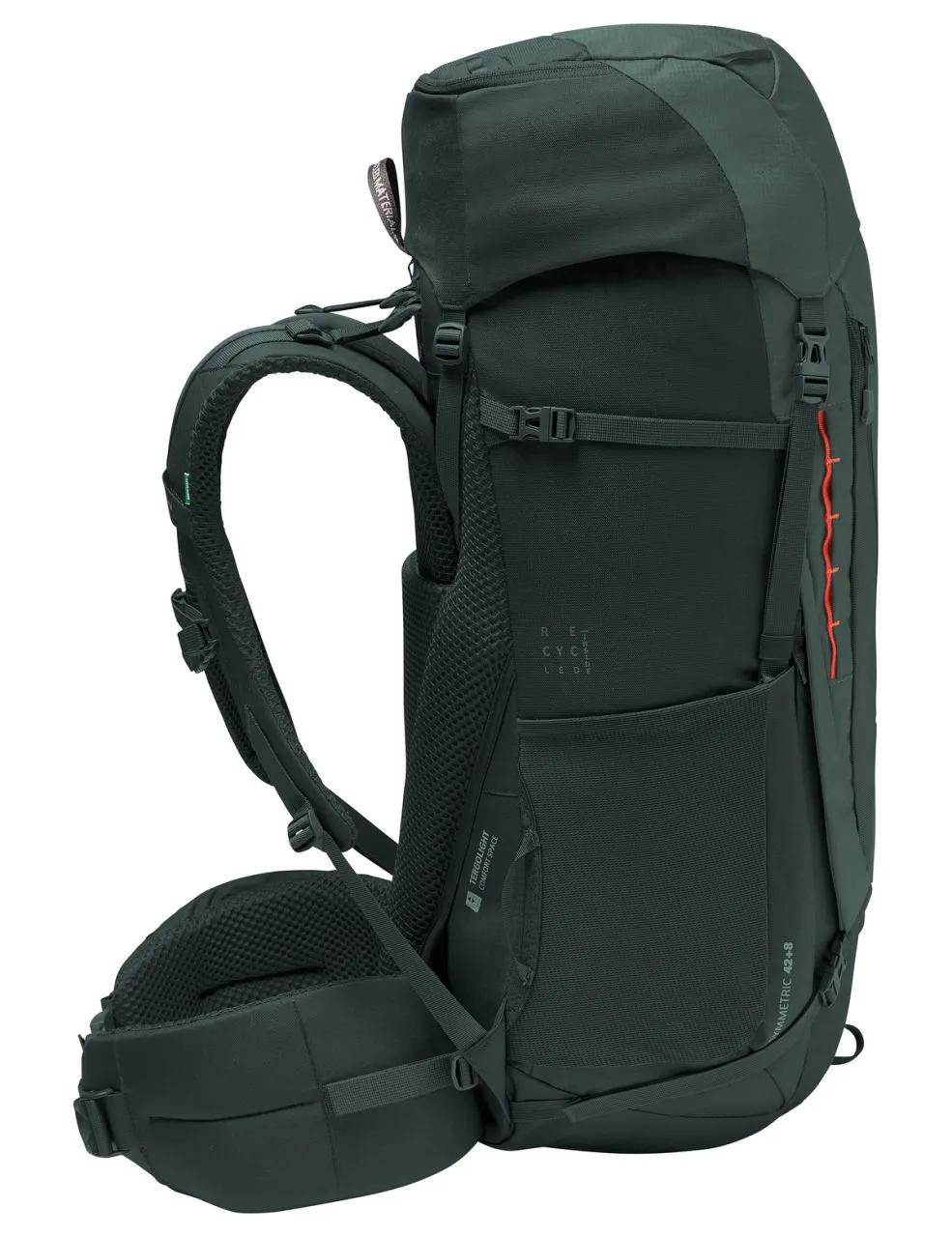 En trekking alpin, circuits de refuge en refuge, pèlerinage et backpacking – un sac à dos de trekking pour tout ! Ses 42 l combinés au port agréable en font un compagnon apprécié. Même en cas de charges lourdes, le système Tergolight Comfort Space assure un confort de portage élevé. La longueur de dos et le rappel de chargepeuvent être ajustés en fonction de la taille corporelle. Le dos est préservé : l’évidement dans le bas du dos soulage l’articulation sacro-iliaque. Les bretelles Ergoshape réglables laissent aux bras une belle liberté de mouvement et répartissent le poids de manière optimale, tout comme la ceinture ventrale rembourrée. Le compartiment principal spacieux de l’Asymmetric 42+8 offre un accès du haut et de l’avant : plus besoin de farfouiller pour retrouver ses affaires. Le compartiment frontal élastique peut accueillir tout ce qui doit rester à portée de la main. Des vêtements mouillés peuvent sécher ici aussi grâce à l’aération optimisée du compartiment frontal. Les poches latérales élastiques pour loger une gourde, une caméra ou une barre aux fruits permettent d’y accéder sans poser le sac. Le sac à dos rend de bons services aussi sur les circuits alpins : la sangle à matériel permet d’arrimer un piolet et des bâtons, des crampons et d’autres matériels peuvent se fixer sur la daisy chain. Deux sangles par côté ainsi qu’une sangle sous le capot permettent de comprimer le bagage. La sangle supérieure est munie d’une boucle de rechange. Le capot avec compartiment interne est réglable en hauteur et offre ainsi un gain de 8 l. Le sac à dos de trekking écologique est principalement fabriqué en matériaux recyclés. Le label Green Shape de VAUDE garantit un produit écologique et fonctionnel fabriqué dans des matériaux durables certifiés bluesign®.