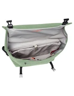 Un classique de VAUDE éprouvé dans sa nouvelle édition ! La sacoche de vélo messager de taille moyenne Augsburg IV M affiche un look sportif et urbain. Le capot est allongé pour mieux l’adapter au contenu dans la hauteur. L’avant abrite sous le capot une poche plate zippée pour transporter un smartphone, des clés ou des documents. Le compartiment principal peut accueillir un ordinateur portable 13,3 » et des documents A4. Un porte-clés, un compartiment pour mobile rembourré et un porte-crayons complètent le compartimentage. Le rail de fixation Plug and Ride réglable permet de monter et retirer la sacoche sur le porte-bagages (diamètre jusqu’à 16 mm) avec les crochets QMR. Un petit cadenas de vélo (p. ex. VAUDE TSA Combination Lock II, non compris dans la livraison) permet de verrouiller la sacoche directement sur le crochet QMR. La bandoulière bien rembourrée et amovible permet de transporter la sacoche confortablement à pied. Les éléments réfléchissants sur l’avant et aux côté renforcent la visibilité. La sacoche de vélo est confectionnée dans une approche climatiquement neutre au siège de VAUDE en Allemagne du Sud selon une technique de haute fréquence, revendique un design épuré et une qualité haut de gamme Made in Germany. Les émissions issues des matériaux, de la fabrication et du transport ont été déterminées de manière holistique et systématiquement réduites. Les émissions actuellement inévitables sont compensées par l’organisation indépendante à but non lucratif « myclimate ».