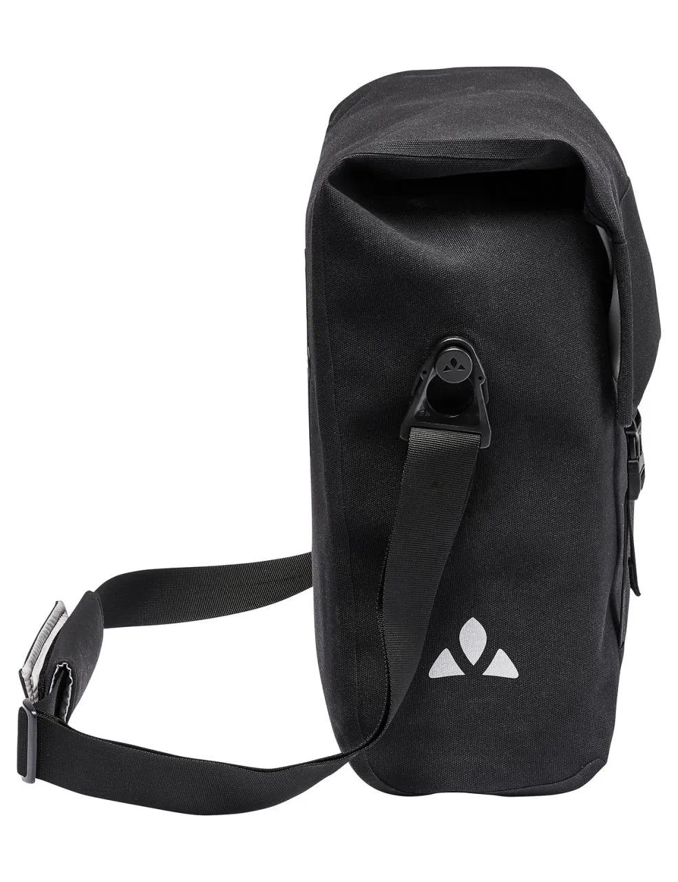 Un classique de VAUDE éprouvé dans sa nouvelle édition ! La sacoche de vélo messager de taille moyenne Augsburg IV M affiche un look sportif et urbain. Le capot est allongé pour mieux l’adapter au contenu dans la hauteur. L’avant abrite sous le capot une poche plate zippée pour transporter un smartphone, des clés ou des documents. Le compartiment principal peut accueillir un ordinateur portable 13,3 » et des documents A4. Un porte-clés, un compartiment pour mobile rembourré et un porte-crayons complètent le compartimentage. Le rail de fixation Plug and Ride réglable permet de monter et retirer la sacoche sur le porte-bagages (diamètre jusqu’à 16 mm) avec les crochets QMR. Un petit cadenas de vélo (p. ex. VAUDE TSA Combination Lock II, non compris dans la livraison) permet de verrouiller la sacoche directement sur le crochet QMR. La bandoulière bien rembourrée et amovible permet de transporter la sacoche confortablement à pied. Les éléments réfléchissants sur l’avant et aux côté renforcent la visibilité. La sacoche de vélo est confectionnée dans une approche climatiquement neutre au siège de VAUDE en Allemagne du Sud selon une technique de haute fréquence, revendique un design épuré et une qualité haut de gamme Made in Germany. Les émissions issues des matériaux, de la fabrication et du transport ont été déterminées de manière holistique et systématiquement réduites. Les émissions actuellement inévitables sont compensées par l’organisation indépendante à but non lucratif « myclimate ».
