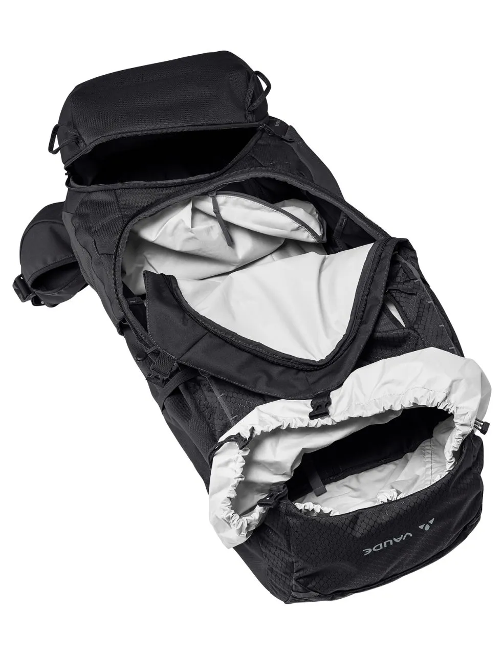 À la découverte de la nature intacte ! Les pros du trekking transportent leur équipement sur de longs circuits de plusieurs semaines dans des régions isolées avec un grand sac à dos de trekking de 65 l – p. ex. en Islande ou en Amérique du Sud. Le système de portage Tergolight Comfort Space Pro garantit une répartition du poids optimale avec des charges lourdes. Le rembourrage spécial au dos du sac déleste l’articulation sacro-iliaque ; l’interstice dans le bas du dos prévient les douleurs dues aux pressions. Les bretelles rembourrées Ergoshape offrent un délestage supplémentaire et la liberté de mouvement aux bras. La longueur du dos comme le rappel de charge peuvent être ajustés et assurent l’assise correcte du sac à dos. La ceinture ventrale dotée d’un épais rembourrage et d’une poche assure un confort de portage exceptionnel. Le contenu peut être retiré du haut et de l’avant dans le compartiment principal. Un sac de couchage peut être rangé dans le fond cloisonné. La poche frontale accueille tout ce qui doit rester à portée de main. Les poches latérales sont accessibles sans poser le sac. La daisy chain et les sangles de positionnement variable offrent de nombreuses possibilités de fixation pour plus d’équipement. Une boucle de rechange se situe sous le capot pour le cas où. Le capot réglable permet d’allonger le chargement à 10 l, tout en se transformant en plus comme un sac banane. La tête peut aussi bouger librement devant le capot en cas de gros chargement. La housse de pluie intégrée permet au sac à dos d’affronter tous les temps. Le matériau principal est recyclé à 100 %, extrêmement robuste et résistant à l’usure. Notre label Green Shape de VAUDE se porte garant d’un produit écologique, fonctionnel et fabriqué dans des matériaux durables certifiés bluesign®.
