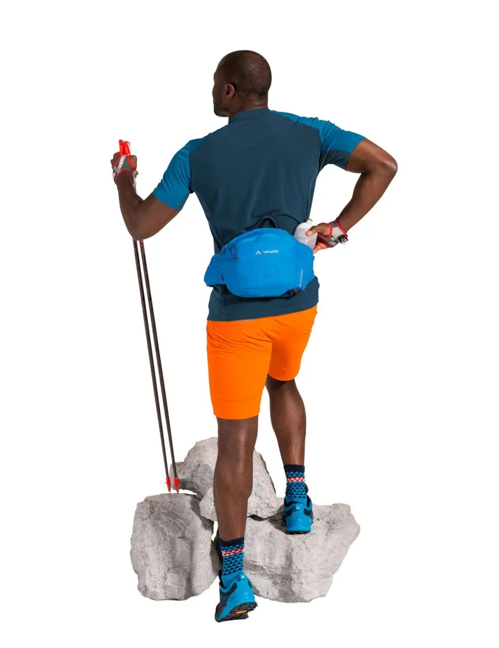 Une fontaine à emporter : sac banane de taille moyenne, offrant une bonne tenue avec porte-gourde intégré pour les ascensions sportives. Il permet même de transporter de grandes gourdes Nalgene. Equipé d’éléments réfléchissants et d’une fixation pour la lumière clignotante. Différentes poches permettent de ranger par ex. le smartphone, la barre énergétique et les clés sans qu’elles ne cliquettent. La gourde n’est pas livrée avec. Ce produit est imperméabilisé grâce à la finition Eco Finish, écologique et sans perfluorocarbures (PFC). Le label Green Shape de VAUDE garantit des produits fonctionnels et écologiques en matières durables.