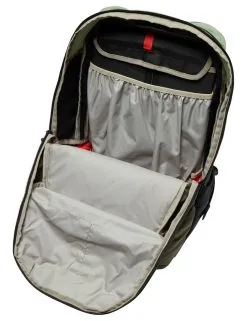 Très grand sac à dos VTT entièrement équipé pour cross alpin ou virées de plusieurs jours avec système dorsal Aeroflex 3D parfaitement aéré. Le système Shifting Back Length permet d’ajuster parfaitement et sans palier la base des bretelles. Le compartiment principal spacieux avec logement pour poche d’hydratation peut être en plus structuré sur le plan horizontal. Le compartiment de fond spacieux peut accueillir un sac de couchage et des chaussures de rechange pour la soirée. Un compartiment pour objets de valeur avec organiseur en filet occupe le haut à l’avant. Le grand compartiment avant est divisé en un compartiment à outils ingénieux avec une pochette pour documents ou cartes à l’arrière. De grandes poches extérieures en filet élastiques permettent aussi de transporter des protecteurs ou des gourdes. L’accès à une poche pour mobile latérale et une petite poche sur le stabilisateur droit est garanti en selle. Un porte-casque, le porte-clignotant réfléchissant et la housse de pluie complètent ces généreuses prestations. Il est possible d’augmenter la capacité du sac à dos VTT si nécessaire de 5 l à l’aide d’un zip tandis que les sangles de compression garantissent le bon arrimage du contenu. Le label Green Shape de VAUDE garantit un produit écologique, fonctionnel et fabriqué dans des matériaux durables certifiés bluesign®. Ce produit est de plus climatiquement neutre : les émissions issues des matériaux, de la fabrication et du transport ont été déterminées de manière holistique et systématiquement réduites. Les émissions actuellement inévitables sont compensées par l’organisation indépendante à but non lucratif « myclimate ».