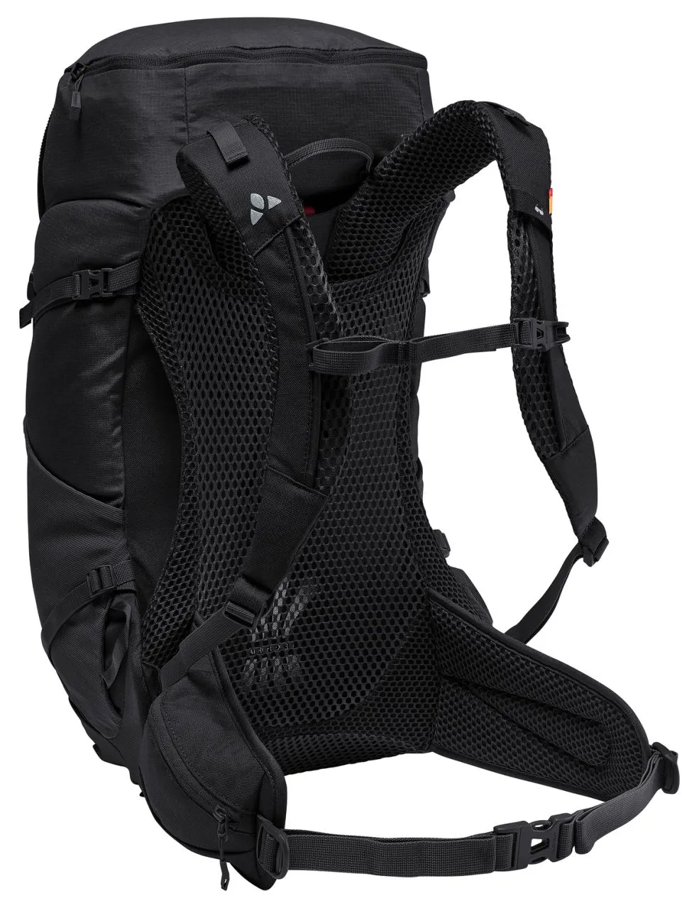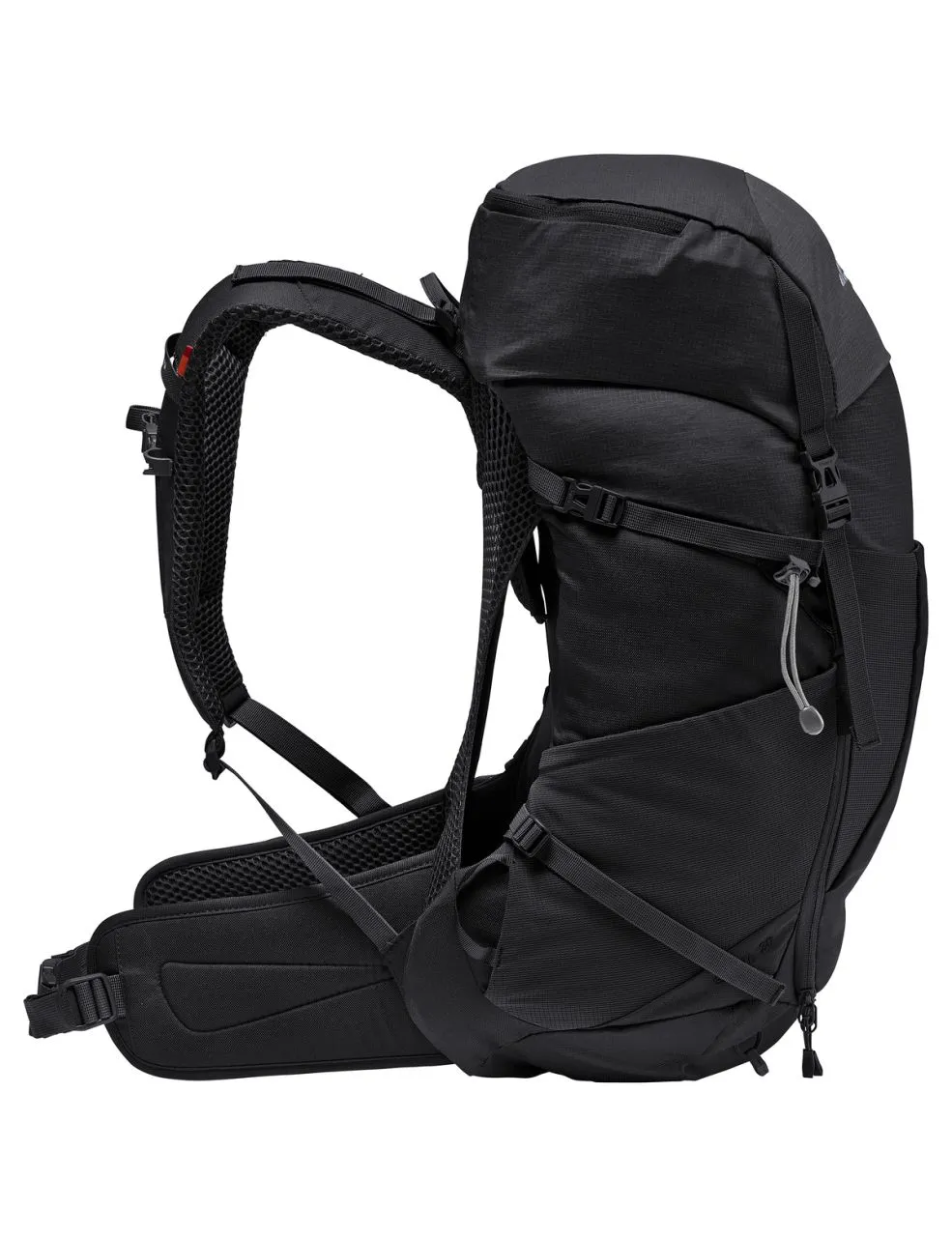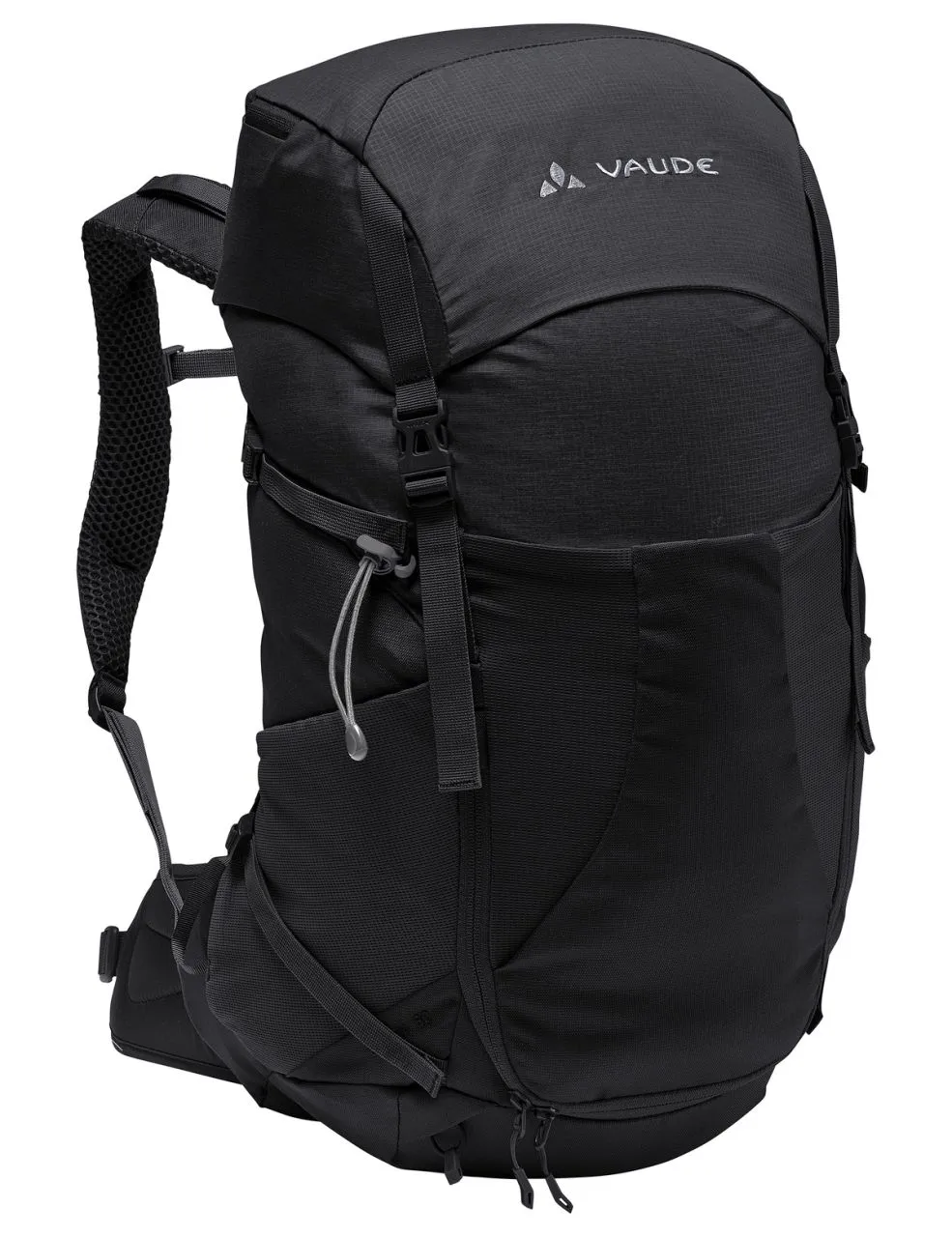 Le chemin est le but ! Brenta 30 est un sac à dos de randonnée sportif pour les circuits d’une journée ambitieux. De par son système dorsal innovant et très bien ventilé par l’arrière Aeroflex 3D, ses bretelles ErgoShape et sa longueur de dos réglable, il s’ajuste rapidement et sans complication et se démarque par un grand confort de portage aussi sur des longs circuits. L’accès avant pratique garantit un accès rapide au contenu du sac à dos, des sangles de compression garantissent un maintien stable dans toute situation de port. Une panoplie de fonctions supplémentaires comme la poche pour objets de valeur, un compartiment élastique spacieux sur l’avant, la fixation de bâtons de trekking, un logement pour système d’hydratation et la housse de pluie intégrée viennent compléter les prestations de Brenta 30. La matière principale du sac à dos est composée à 50 % de polyester recyclé afin de protéger nos ressources. Le sac à dos est déperlant grâce à la finition EcoFinish sans PFC. Le label Green Shape de VAUDE garantit un produit écologique, fonctionnel et fabriqué dans des matériaux durables.