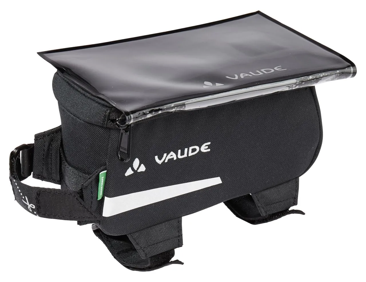 Agrandissez votre cockpit ! Cette sacoche compacte permet de ranger à portée de main la barre énergétique et un peu de monnaie ; elle est équipée d’une housse amovible et étanche à l’eau pour y ranger votre smartphone et suivre le GPS. Les deux sont faciles et rapides à installer. Le label Green Shape de VAUDE garantit des produits fonctionnels et écologiques en matières durables.