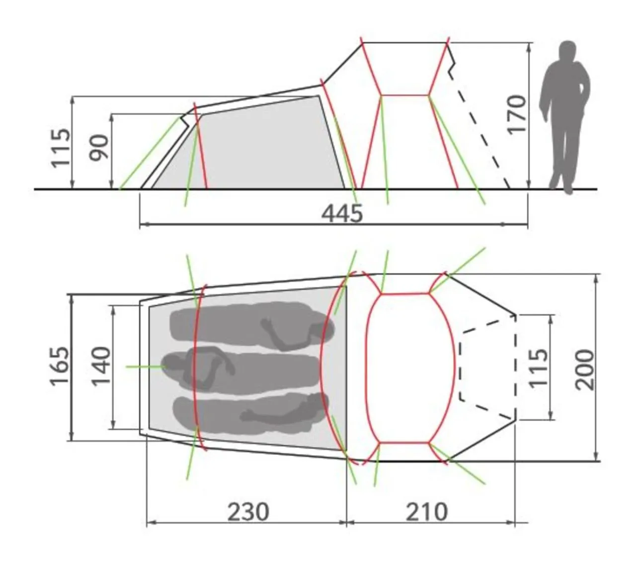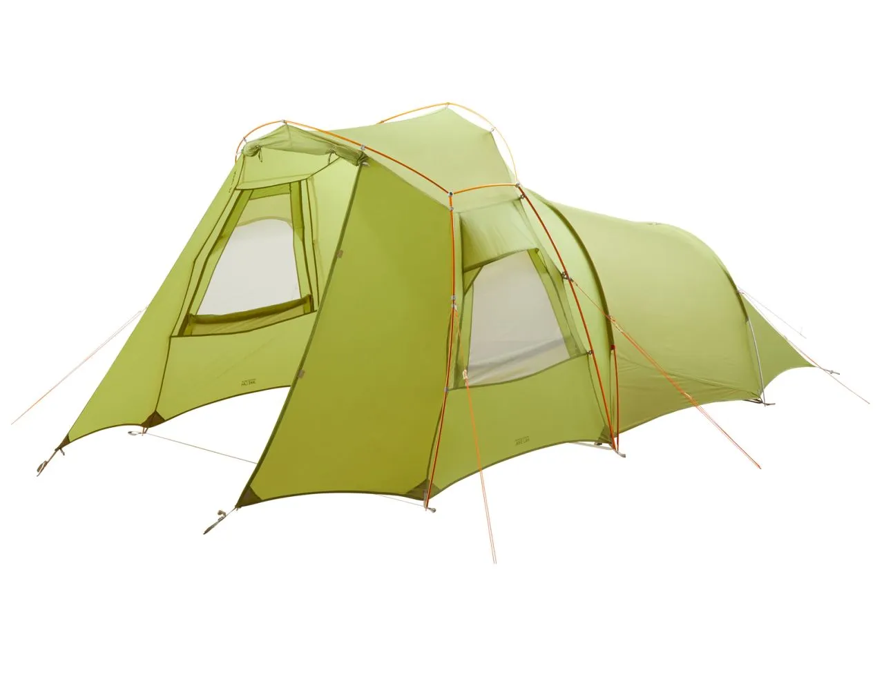La grande liberté (de tête) : tente 3-saisons légères et très spacieuse, avec parois verticales, grande antichambre hauteur debout et grande entrée. Idéale pour les amateurs de trekking et de voyages à vélo qui aiment le confort. Grâce à la tente intérieure déjà accrochée, ce modèle est facile et rapide à monter même quand il pleut («doublepitching»). L’antichambre est assez grande pour s’y réunir et cuisiner. Par ailleurs, on peut y ranger les bagages ou les vélos. L’échange d’air est optimisé grâce aux bords légèrement relevés du sol du double-toit, aux fenêtres avec filets et aux ouvertures de ventilation protégées de la pluie au niveau de l’entrée. Le label Green Shape de VAUDE garantit des produits fonctionnels et écologiques en matières durables.