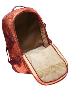 Grand sac multifonction pour un usage polyvalent : Duffle Bag sert à la fois de sac de transport et de voyage. Sa capacité de 65 l permet de stocker de nombreuses affaires pour le camping, le sport et les voyages. Grâce à ses bretelles escamotables, rembourrées et préformées, CityDuffel 65 se porte aisément sur de longues distances. Les compartiments latéraux accessibles de l’intérieur et de l’extérieur par un zip conservent porte-monnaie, téléphone portable et autres accessoires toujours à portée de main. Les poignées rembourrées sur les deux côtés permettent de transporter le sac aisément malgré une charge lourde. Des sangles latérales garantissent une meilleure flexibilité, afin de pouvoir ajouter un matelas ou une veste à l’extérieur, ou pour comprimer l’ensemble du sac en cas de faible charge. Des mousquetons permettant d’accrocher plus d’accessoires peuvent venir se fixer sur la daisy chain (bande à boucles externe). Le compartimentage convient à tous les usages : vous pouvez ainsi ranger au choix du linge sale, des chaussures ou des affaires moins volumineuses dans le compartiment inférieur séparément du compartiment principal ou utiliser le compartiment principal entier comme un seul espace, grâce aux housses de séparation intégrées et flexibles. Cette housse de séparation sert aussi à conserver le sac de manière peu encombrante. Le mélange de matériaux résistant CityDuffel 65 est composé d’un polyamide recyclé et d’un polyester issu du recyclage de bouteilles PET. La surface pourvue d’une finition est antisalissures et déperlante. Ce Duffle Bag est ainsi un compagnon de voyage pleinement polyvalent et écologique tout au long de nombreuses années. Le label Green Shape de VAUDE garantit un produit écologique, fonctionnel et fabriqué dans des matériaux durables.