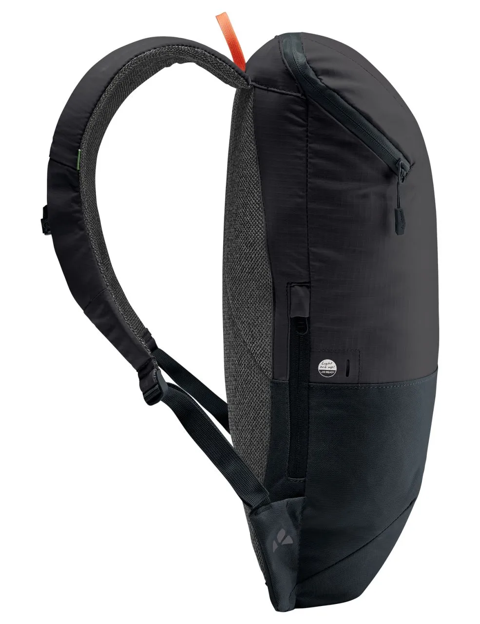 Un multitalent urbain, avec toutes les caractéristiques d’un produit « multiuse » : Ce sac à dos ultra moderne, multifonction et résistant crée l’événement avec ses 14 l de capacité ! Il réunit des éléments des sports de montagne et de cyclisme, ainsi que du nomadisme urbain pour former un sac à dos de ville au style imparable. Dans son compartiment rembourré, la tablette trouvera un abri sûr tandis qu’un autre compartiment extérieur rembourré permet de loger une batterie externe ou un smartphone ; le compartiment principal spacieux peut s’ouvrir en grand grâce à sa fermeture éclair sur tout le pourtour. Le sac à dos CityGo 14 séduit par ailleurs par une organisation interne sophistiquée pouvant accueillir des stylos, des clés et tout ce que l’on doit avoir rapidement en main. Sa poche filet latérale peut accueillir une bouteille thermos, une gourde ou un snack. Le dos près du corps Vent-Tex offre un confort de portage agréable avec une bretelle et ceinture ventrale ergonomique, même en cas de chargement complet. La fonctionnalité innovante « LED ready » est l’une des dernières nouveautés : la boucle prévue à cet effet permet d’insérer un guide lumineux LED disponible en option (kit « Light me up Kit »), qui est alimenté par une batterie externe. Ceci permet de se faire mieux voir dans l’obscurité, même à l’écart des routes. Un parfait sac à dos pour la vie moderne urbaine de tous les jours, quel que soit ton moyen de locomotion, à vélo, en bus ou à pied ! Le label Green Shape de VAUDE garantit un produit écologique, fonctionnel et fabriqué dans des matériaux durables.
