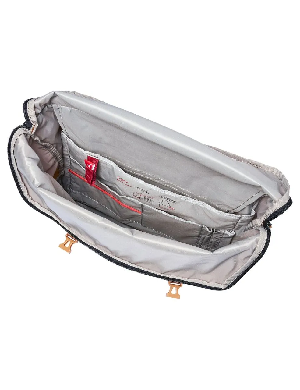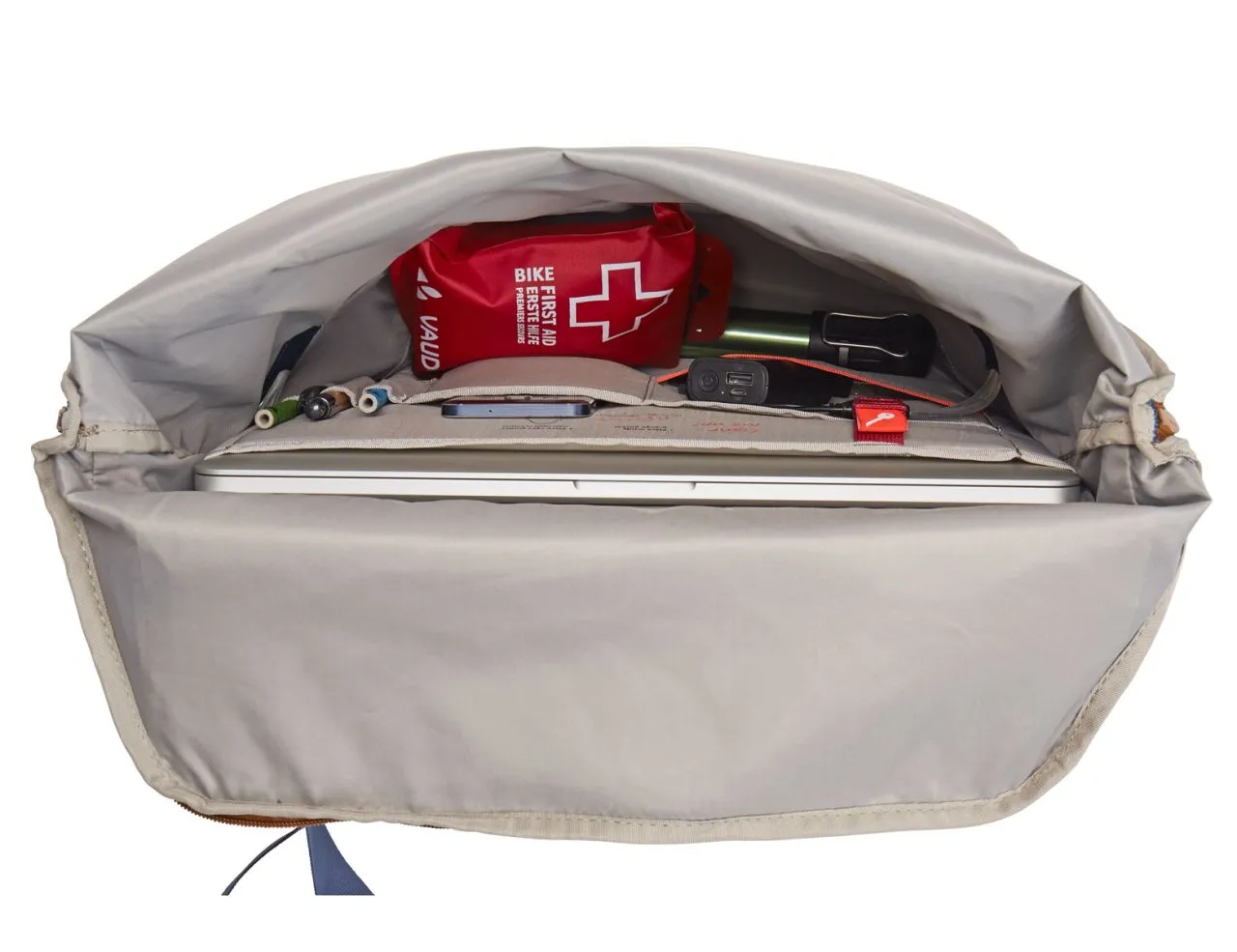 La sacoche de vélo CityMe Bike est le compagnon idéal des cyclistes de tous les jours et urbains pour leurs activités quotidiennes. Le sac pour ordinateur portable style sacoche de coursier peut passer du vélo à la main ou à l’épaule. Le compartimentage astucieux de son logement interne permet d’accueillir tous les autres accessoires indispensables au quotidien en plus d’un ordinateur portable 13,3 pouces : carnets de notes, pull de rechange, smartphone, clés, porte-monnaie, etc. Grâce au système de fixation QMR 2.0, cette sacoche de vélo avec fonction sac de coursier est bien accrochée à l’abri des soubresauts et peut se fixer et se défaire rapidement sans difficulté en cas de besoin. La fonctionnalité « LED ready » de la sacoche de vélo permet de la doter en outre du kit Light me up, un guide lumineux innovant pouvant être commandé en option et alimenté par une batterie externe courante. CityMe Bike constitue ainsi un sac modulaire polyvalent dédié à l’usage quotidien, qui s’avère particulièrement avantageux pour les trajets domicile-travail et dans un cadre urbain. Le label Green Shape de VAUDE garantit un produit écologique, fonctionnel et fabriqué dans des matériaux durables et en partie recyclés.