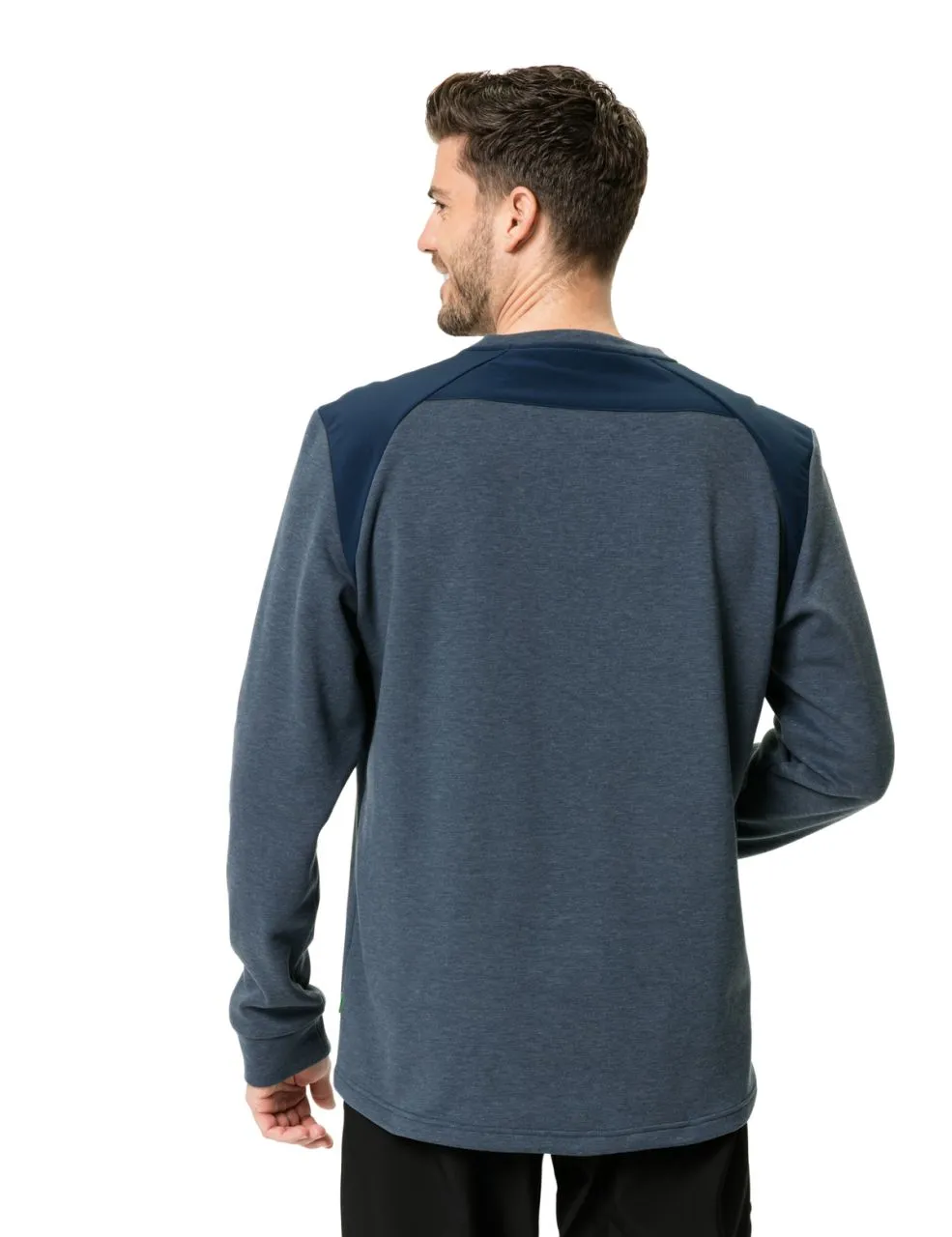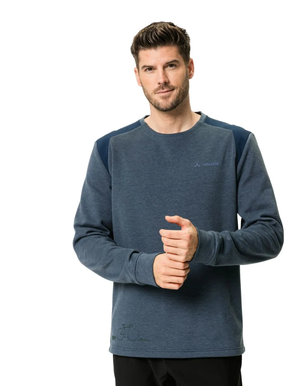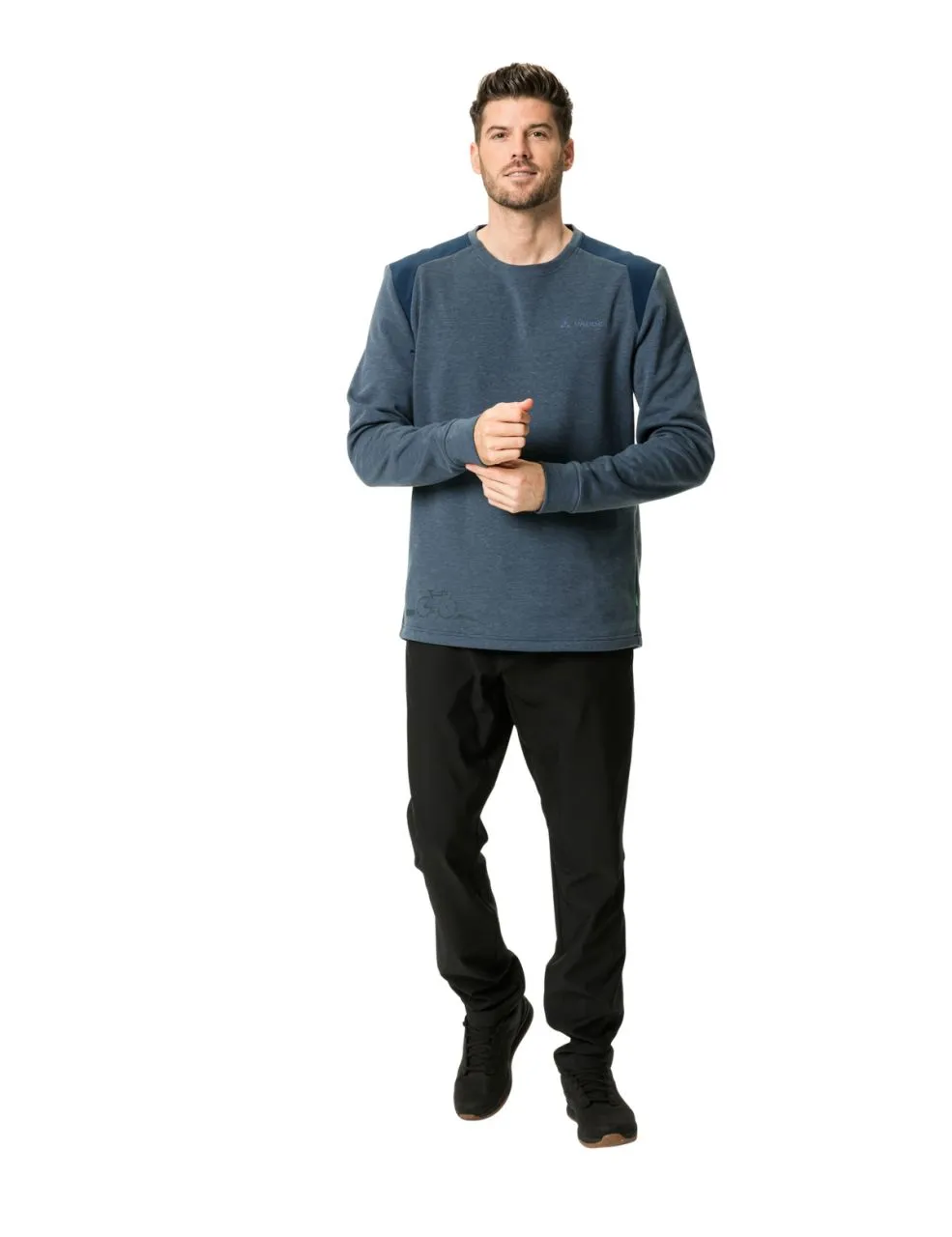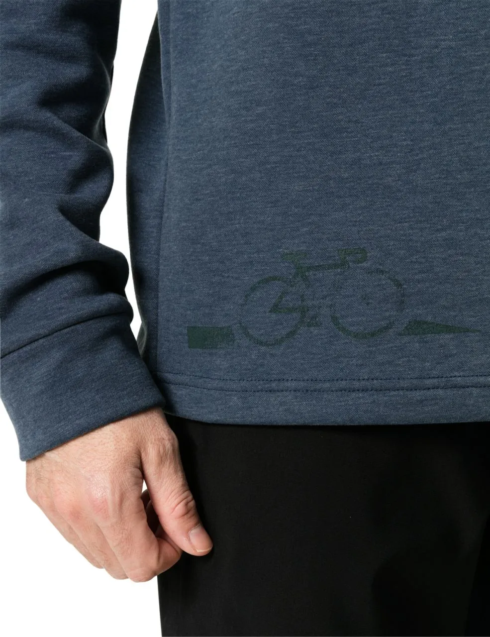 EN SELLE ! Ce sweat-shirt dédié à tous ceux qui veulent rendre le monde un peu meilleur en vélo revendique cet engagement haut et fort ! En surcouche par temps sec ou comme couche intermédiaire sous la pluie et la neige, il réchauffe efficacement tout cycliste urbain. Ses empiècements résistants à l’abrasion aux épaules favorisent l’utilisation d’un sac à dos ; les poignets dotés d’éléments réfléchissants dans une harmonie de teintes sont allongés sur le dos des mains pour une meilleure tenue. Le col haut de la polaire grattée douce à l’intérieur confère à cette tenue ce petit rien qui la rend parfaitement compatible avec la fac, le bureau ou au café. Sa matière est composée à 91 % de polyester recyclé et contribue à la lutte contre les microplastiques avec sa teneur à 9 % de fibres de bois. Il possède ainsi des propriétés anti-odeurs, est facile d’entretien et sèche rapidement. Le sweat-shirt Cyclist Sweater est parfaitement assorti au pantalon Cyclist Warm Pants ou Mineo Pants et bénéficie de la certification selon la norme environnementale la plus stricte bluesign®. Le label Green Shape de VAUDE garantit un produit écologique, fonctionnel et fabriqué dans des matériaux durables.