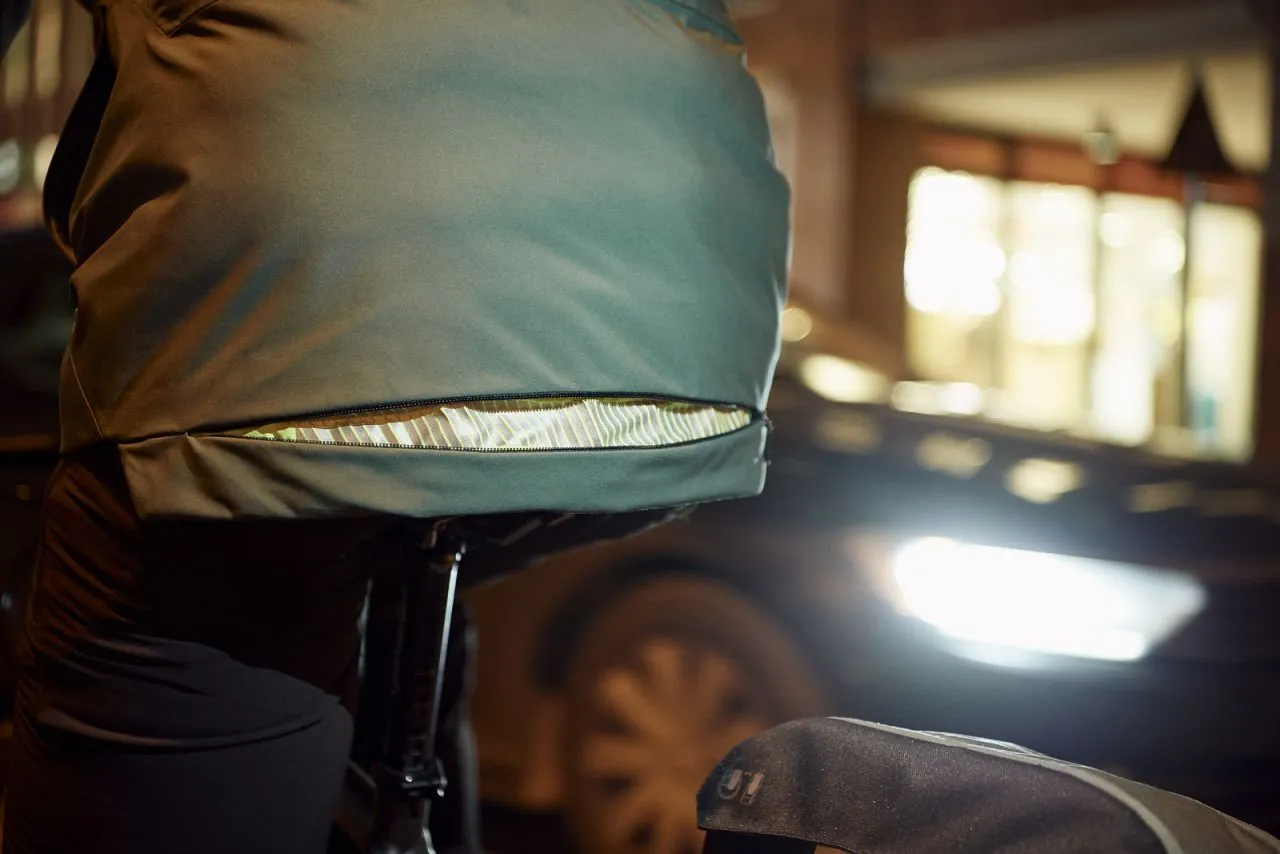 Elle affronte tous les temps ! La veste de pluie Ă©tanche Ă lâeau et au vent, et trĂšs chaude, fait ses preuves sur les trajets courts dans lâagitation citadine. Les adeptes du vĂ©lo Ă©lectrique ne quitteront plus la voie de dĂ©passement : 2 poches avant Ă©tanches Ă lâeau et une poche intĂ©rieure zippĂ©e sur le cĂŽtĂ© gauche permettent de conserver tĂ©lĂ©phone, clĂ©s ou mouchoirs. Les zips bidirectionnels sous les aisselles assurent une ventilation optimale en plein effort. Lâourlet latĂ©ral et la capuche attenante avec visiĂšre renforcĂ©e, ajustable en hauteur et en largeur de lâintĂ©rieur, assurent une bonne libertĂ© de mouvement. Les extrĂ©mitĂ©s des manches munies dâĂ©lĂ©ments rĂ©flĂ©chissants dans une harmonie de teintes sont allongĂ©es sur le dos de la main. Des poignets intĂ©rieurs Ă©lastiques Ă©cartent les courants dâair. Cette veste renferme un dĂ©tail astucieux de plus : dans le bas du dos se cache un large imprimĂ© rĂ©flĂ©chissant derriĂšre un zip qui augmente la visibilitĂ© du cycliste en selle et le protĂšge des Ă©claboussures une fois le zip ouvert. La performance thermique au niveau du torse est fournie par le duvet synthĂ©tique qui est confectionnĂ© en chambres comme dans un sac de couchage et qui peut rĂ©chauffer mĂȘme Ă lâĂ©tat humide. Lâisolant PrimaloftÂź Black Eco Insulation est intĂ©grĂ© dans les manches et dans la capuche afin dâassurer une rĂ©gulation thermique optimale et une meilleure libertĂ© de mouvement. Tous les matĂ©riaux utilisĂ©s sont recyclĂ©s Ă 100 %. La veste Cyclist Warm Rain Jacket est assortie au pantalon Cyclist Warm Pants ou Mineo Pants et bĂ©nĂ©ficie de la certification selon la norme environnementale la plus stricte bluesignÂź. Le label Green Shape de VAUDE garantit un produit Ă©cologique, fonctionnel et fabriquĂ© dans des matĂ©riaux durables.