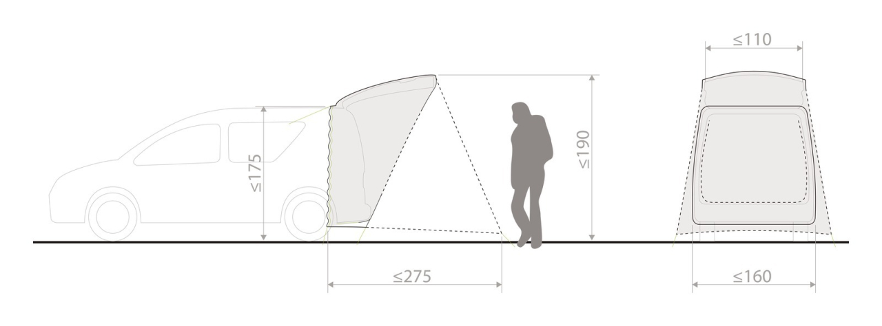 L’idée est aussi simple que géniale : Drive Trunk permet de transformer le hayon du coffre et tout l’espace situé dessous et derrière en un vaste auvent, et ce en un rien de temps ! Associé à l’habitacle du coffre lui-même, un espace généreux est créé pour dormir, cuisiner et passer un moment convivial à plusieurs. D’un usage particulièrement polyvalent, Drive Trunk est compatible avec différents types de véhicule grâce à sa construction de tendeur sophistiquée. Il peut ainsi être monté auprès de la plupart des modèles courants de breaks et SUV, pour transformer ta bonne vieille voiture en un « mobile home ». Le hayon ouvert constitue ici l’élément porteur de la construction de tente et permet ainsi de se changer aisément, voire de prendre une douche en station debout à l’abri des regards. La place disponible dans l’auvent offre suffisamment d’espace de rangement, voire de cuisiner et de manger avec deux chaises et une petite table. Ce produit est imperméabilisé avec la finition Eco Finish, écologique et sans fluorocarbures (PFC). Le label Green Shape de VAUDE garantit un produit écologique, fonctionnel et fabriqué dans des matériaux durables.