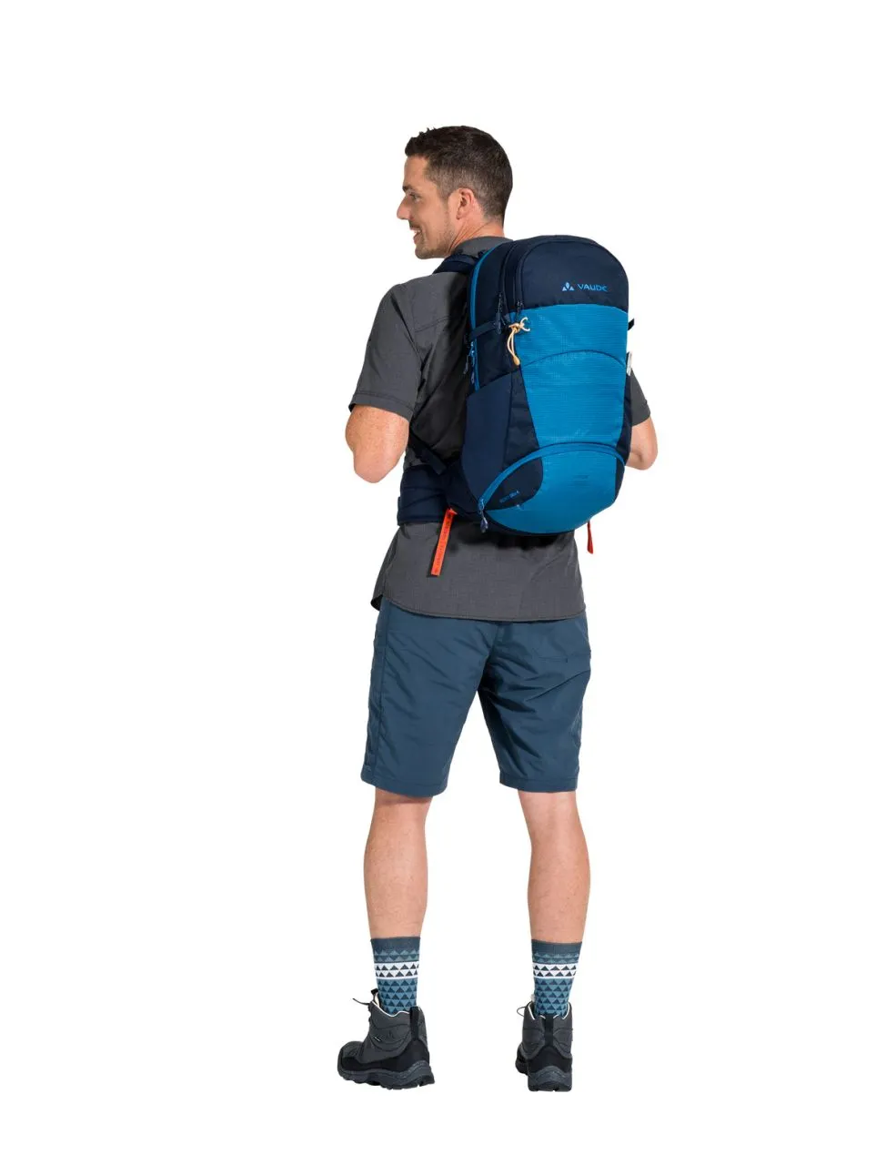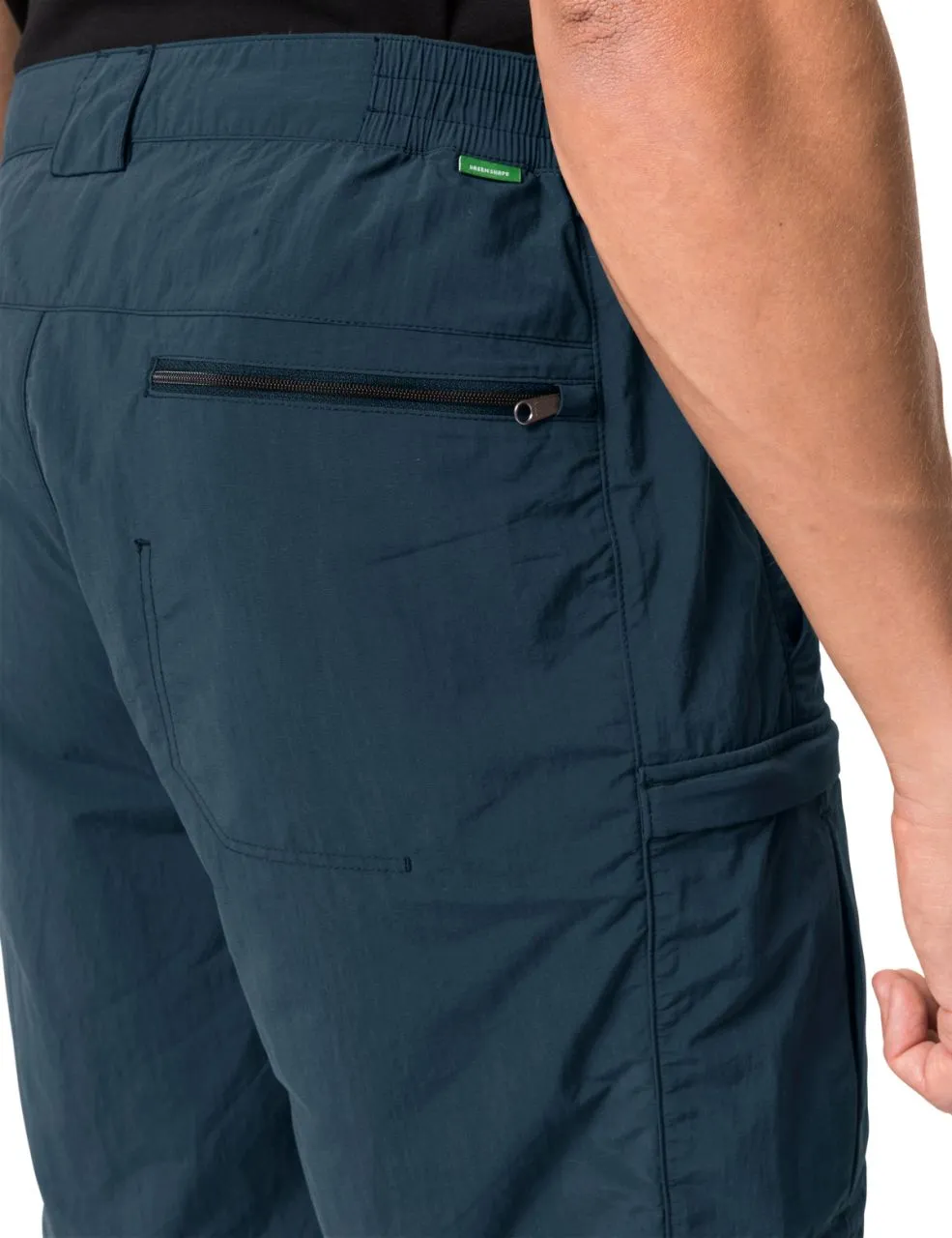 Le bermuda Men’s Farley Bermudas V est un pantalon universel pour le trekking et les voyages, fabriqué dans une matière douce au toucher, à séchage rapide et pourvue du facteur de protection UV UPF 50+. Le matériau ne se contente pas de protéger la peau, mais aussi l’environnement. Il est fabriqué via une méthode du bilan massique certifiée à partir entre autres de pneus usagés recyclés. La nouvelle édition du short Bermuda intègre la substance végétale du géraniol dans sa composition, qui repousse efficacement les mouches et les moustiques ; il est très compact et sèche rapidement. Avec son choix de poches complet, il est le compagnon idéal de tous les voyages et peut se ranger sans difficulté même dans de très petits bagages. Le label Green Shape de VAUDE garantit un produit écologique, fonctionnel et fabriqué dans des matériaux durables. Ce pantalon est de plus climatiquement neutre : les émissions issues des matériaux, de la fabrication et du transport ont été déterminées de manière holistique et systématiquement réduites. Les émissions actuellement inévitables sont compensées par l’organisation indépendante à but non lucratif « myclimate ».
