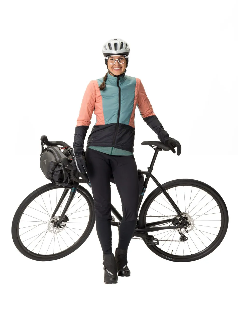 Pour y aller à fond : la veste Women’s Kuro Insulation Jacket sportive et hautement fonctionnelle est une veste isolante chauffante, déperlante et antisalissures pour femme d’excellence ; elle offre une parfaite protection contre le vent, la salissure et les températures glaciales sur les circuits ambitieux de gravel. La coupe étroite avec un dos allongé, l’isolation Primaloft® Eco Black à l’avant et les poignets élastiques épousant le corps repoussent le froid. Des empiècements respirants et élastiques assurent un climat corporel équilibré et une parfaite liberté de mouvement sur le gravel. Des poches zippées pratiques de manipulation aisée sur l’avant et au dos peuvent accueillir des clés, de la monnaie, un mobile, une barre énergétique et d’autres accessoires sur les chemins cahoteux. L’intérieur gratté doux assure un confort au porter agréable, des empiècements élastiques siliconés à la ceinture et des éléments réfléchissants décoratifs complètent l’équipement de la veste qui se démarque par une fonctionnalité et un style sans compromis. La veste est dotée d’une finition déperlante Eco Finish sans PFC et ainsi une vraie pro du gravel. Cette veste cycliste écologique est principalement composée de matériaux recyclés et climatiquement neutre : les émissions issues des matériaux, des processus de fabrication et du transport ont été déterminées de manière holistique et systématiquement réduites. Les émissions actuellement inévitables ont été entièrement compensées par l’organisation indépendante à but non lucratif « myclimate ». En tant que membre élevé au rang de Leader de l’organisme indépendant Fair Wear, VAUDE s’engage en faveur de conditions de travail et de salaires équitables. Le label Green Shape de VAUDE garantit un produit écologique, fonctionnel et fabriqué dans des matériaux durables.