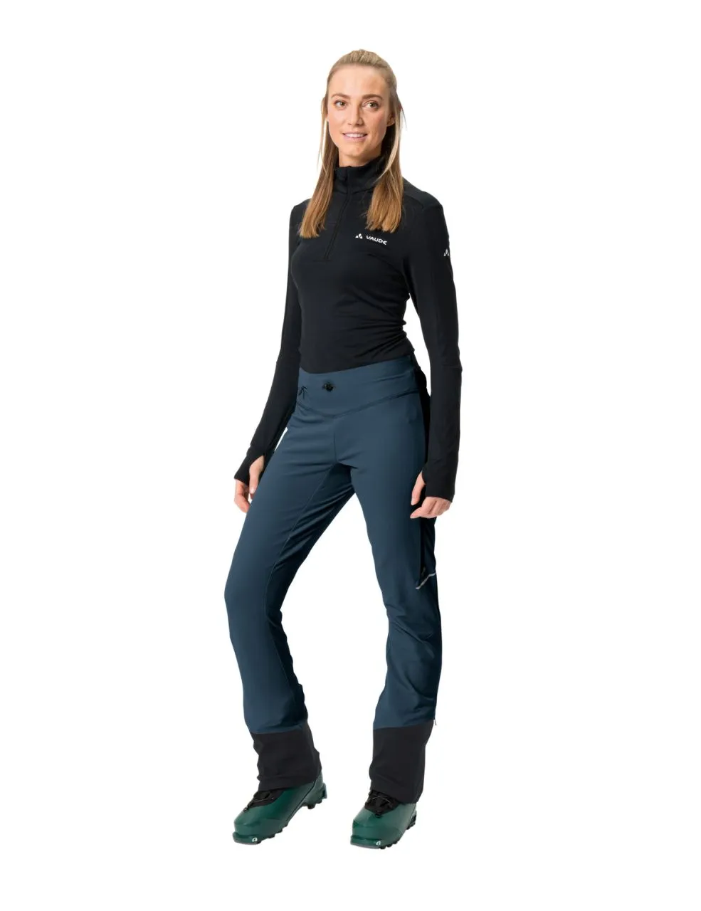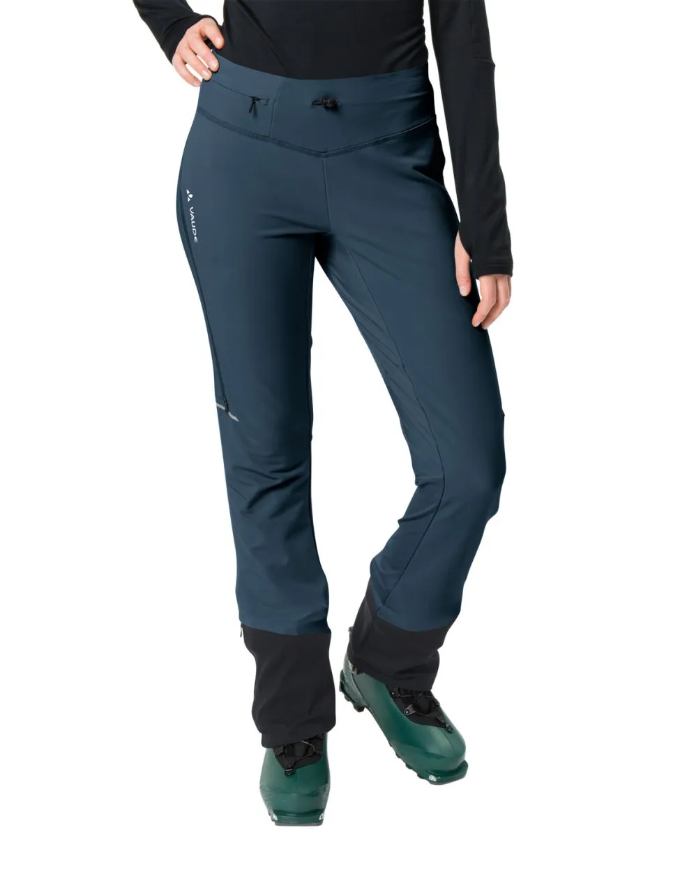 Idéal pour le parcours d’entraînement rapide ! Ce pantalon pour randonnées à ski pour femme au look sportif et dynamique est taillé dans une coupe près du corps et offre une large liberté de mouvement ainsi qu’une excellente respirabilité grâce à son mélange de matériaux intelligent. Ses matériaux ultra élastiques forment une barrière contre le vent tout en restant extrêmement perméable à la vapeur. Ses zips d’aération latéraux favorisent en outre la régulation thermique corporelle, même en cas de mouvements intenses. Le bas des jambes élastique avec renfort antifrictions en Cordura® résistant peut être passé sans difficulté par-dessus les chaussures de ski. Le pantalon softshell femme est doté d’éléments décoratifs réfléchissants. Ce produit est apprêté avec la finition Eco Finish, déperlante, écologique et sans fluorocarbures (PFC). Le label Green Shape de VAUDE garantit un produit écologique, fonctionnel et fabriqué dans des matériaux durables. En tant que membre élevé au rang de Leader de l’organisme indépendant Fair Wear, VAUDE s’engage en faveur de conditions de travail et de salaires équitables. Ce produit est de plus climatiquement neutre : les émissions issues des matériaux, des processus de fabrication et du transport ont été déterminées de manière holistique et systématiquement réduites. Les émissions actuellement inévitables ont été entièrement compensées par l’organisation indépendante à but non lucratif « myclimate ».