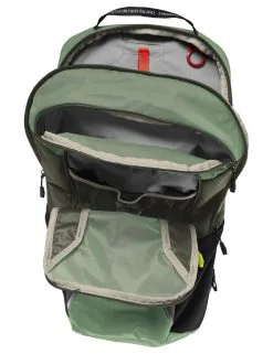 Sac à dos VTT compact à usage polyvalent au quotidien. Le grand compartiment principal du sac à dos de vélo Ledro 12 accueille une poche d’hydratation jusqu’à 3 l (non comprise dans la livraison) et des vêtements de rechange. Un compartiment séparé dans le haut permet de mettre des objets de valeur à l’abri. Le compartiment à outils à l’avant permet d’organiser un outil multifonction, une chambre à air, un kit de réparation dans les pochettes en filet. 2 poches en filet souples latérales accueillent des protecteurs, des gants ou des accessoires. Le système dorsal Vent-Tex offre une très bonne aération et un maintien optimal sur le dos grâce à la ceinture ventrale légèrement rembourrée munie de pochettes sur le stabilisateur droit, et à la sangle de poitrine avec porte-tube. Des éléments réfléchissants, un porte-clignotant réfléchissant et une housse de pluie à ranger dans le compartiment du fond complètent les prestations. Le matériau principal de ce sac à dos VTT est composé à 100 % en polyester recyclé, le matériau technique sur l’avant à 52 % de polyamide recyclé. Le label Green Shape de VAUDE garantit un produit écologique, fonctionnel et fabriqué dans des matériaux durables certifiés bluesign®. En tant que membre Leader de l’organisme indépendant Fair Wear, VAUDE s’engage en faveur de conditions de travail et de salaires équitables. Ce produit est de plus climatiquement neutre : les émissions issues des matériaux, de la fabrication et du transport ont été déterminées de manière holistique et systématiquement réduites. Les émissions actuellement inévitables sont compensées par l’organisation indépendante à but non lucratif « myclimate ».