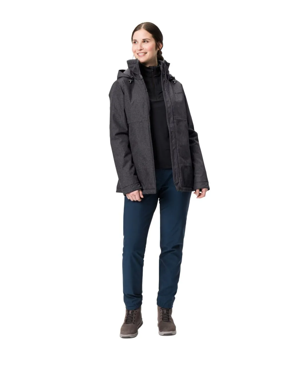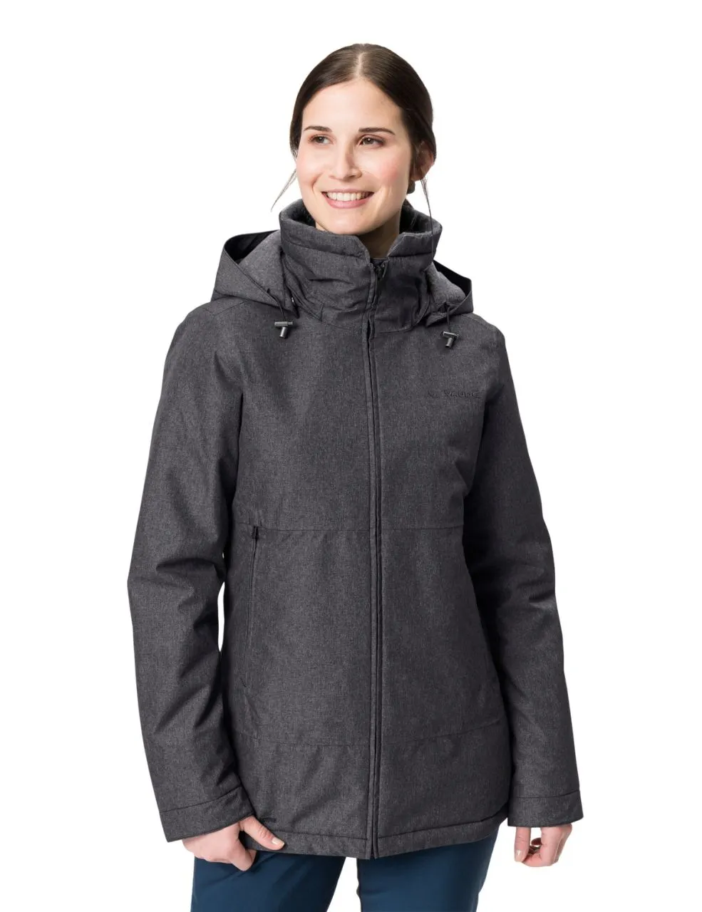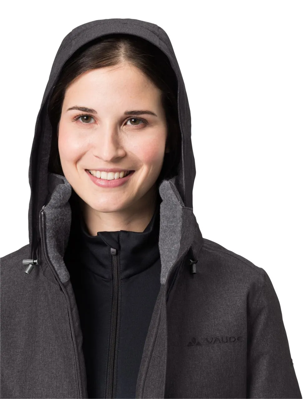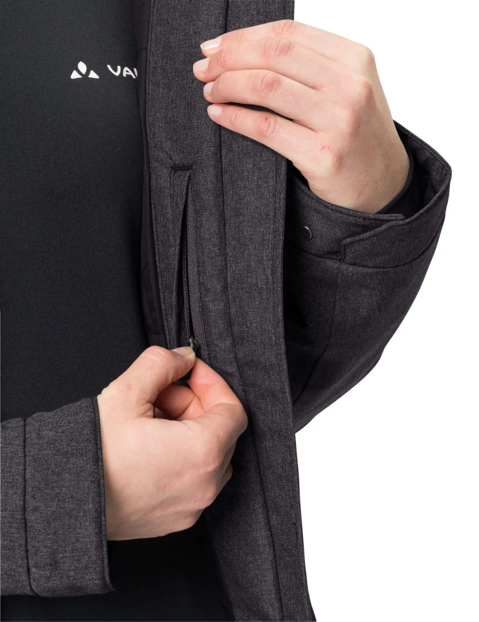 Garde-robe élégante en matériaux recyclés : cette veste d’hiver dame recèle une foule de détails pratiques et de fonctionnalités ainsi qu’une approche écologique derrière un aspect discret. La membrane étanche à l’eau et au vent résiste aux caprices de la météo et offre une bonne respirabilité dans le même temps. L’isolant fonctionnel Primaloft® Black apporte chaleur et bien-être : cette isolation facile d’entretien se démarque par un gonflant élevé qui retient la chaleur longtemps près du corps. La capuche peut être retirée par beau temps et les réglages au niveau de la ceinture, des manches et de la capuche assurent une bonne protection contre le vent et le froid. Le col en laine douce protège du froid quand il est relevé et séduit par son look tendance quand il est rabattu. Les poches extérieures et intérieures pratiques peuvent accueillir un téléphone et un porte-monnaie tout en réchauffant les doigts lors des températures glaciales. Le label Green Shape de VAUDE garantit un produit écologique, fonctionnel et fabriqué dans des matériaux durables certifiés bluesign®.