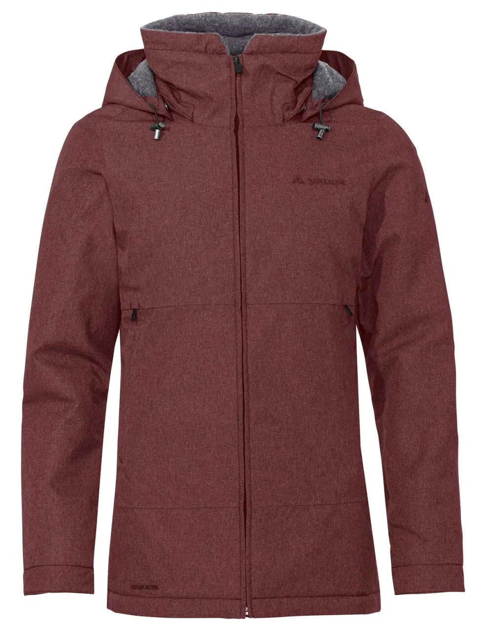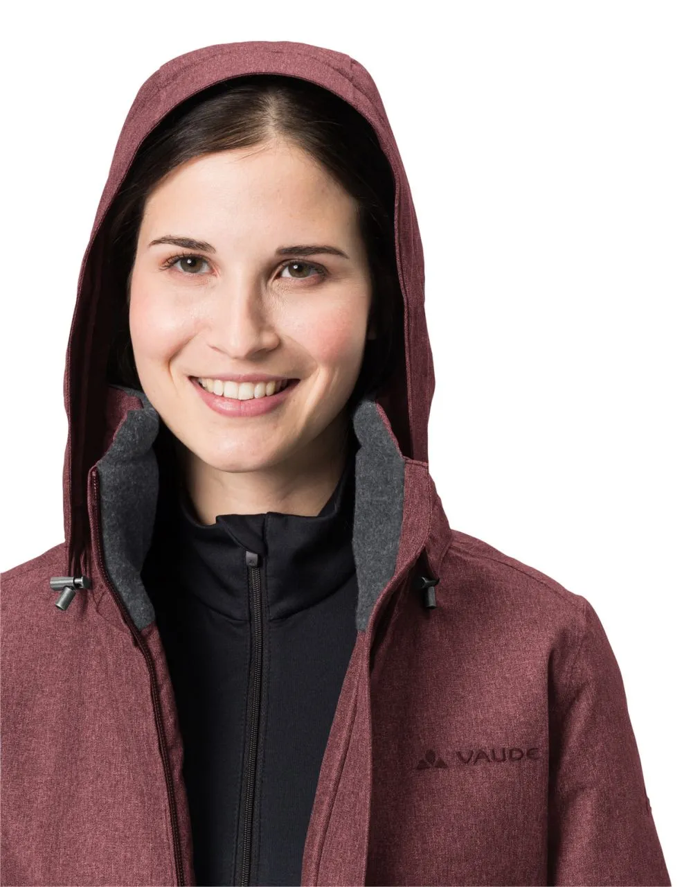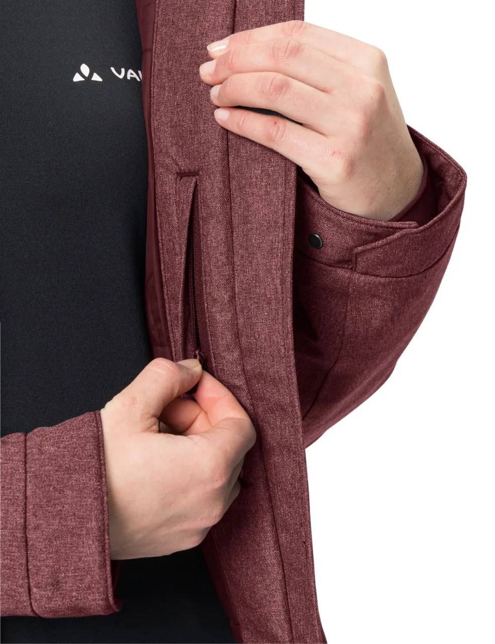 Garde-robe élégante en matériaux recyclés : cette veste d’hiver dame recèle une foule de détails pratiques et de fonctionnalités ainsi qu’une approche écologique derrière un aspect discret. La membrane étanche à l’eau et au vent résiste aux caprices de la météo et offre une bonne respirabilité dans le même temps. L’isolant fonctionnel Primaloft® Black apporte chaleur et bien-être : cette isolation facile d’entretien se démarque par un gonflant élevé qui retient la chaleur longtemps près du corps. La capuche peut être retirée par beau temps et les réglages au niveau de la ceinture, des manches et de la capuche assurent une bonne protection contre le vent et le froid. Le col en laine douce protège du froid quand il est relevé et séduit par son look tendance quand il est rabattu. Les poches extérieures et intérieures pratiques peuvent accueillir un téléphone et un porte-monnaie tout en réchauffant les doigts lors des températures glaciales. Le label Green Shape de VAUDE garantit un produit écologique, fonctionnel et fabriqué dans des matériaux durables certifiés bluesign®.
