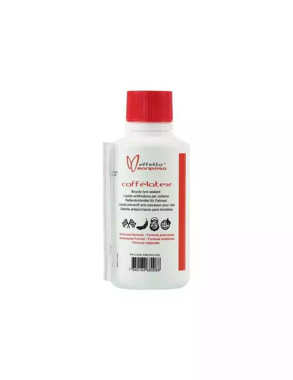 Caffélatex ne contient pas d’ammoniac ni d’autres produits chimiques agressifs: cette caractéristique en fait également le liquide d’étanchéité préféré pour les applications de cyclo-cross / boyau, ne causant aucun dommage aux chambres à air en latex.