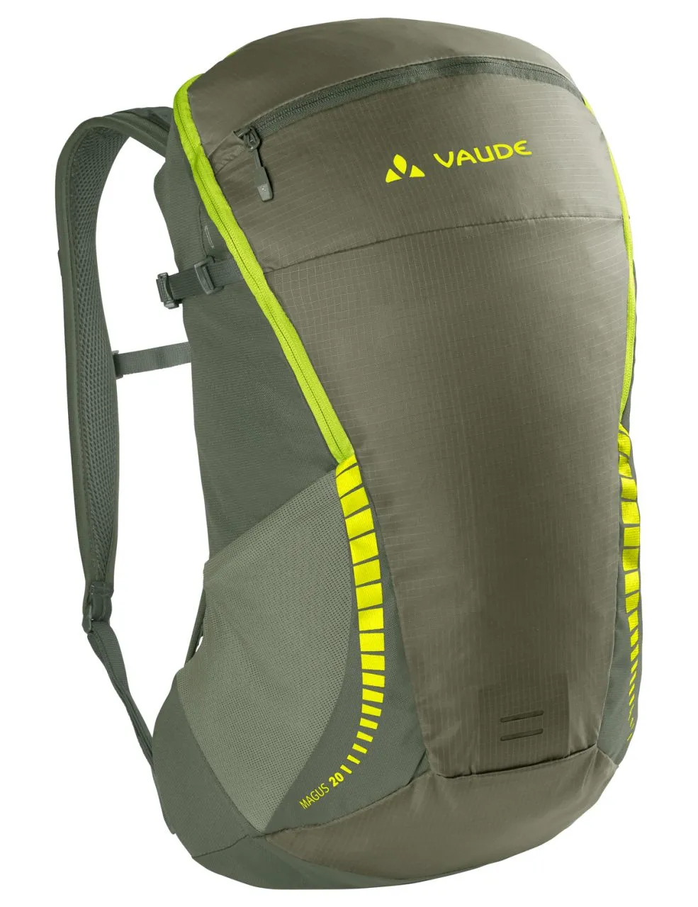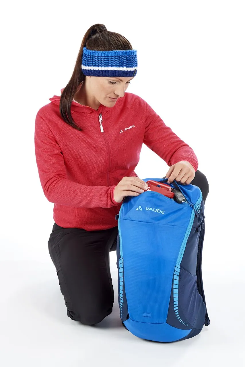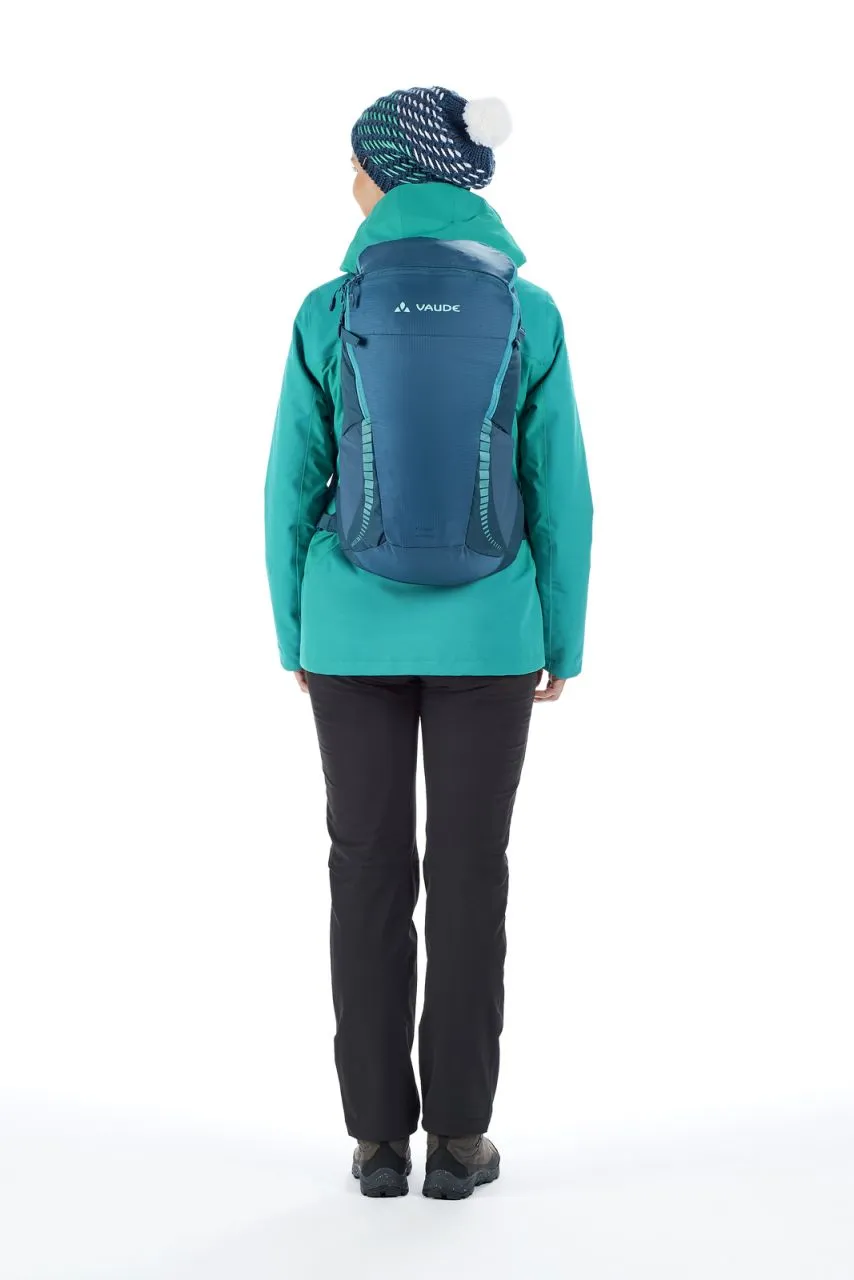 Magus 20 est parfait pour les randonneurs. Car ce sac à dos compact et confortable a plus d’une corde à son arc. Il séduit par son nouveau système de portage innovant Aeroflex 3D, qui offre au sac à dos une assise confortable sur les hanches et qui assure une circulation d’air optimale au niveau du dos sur les parcours physiques. Le harnais d’épaule réglable à la forme ergonomique ErgoShape assure en plus un confort au porter agréable. Ses compartiments spacieux peuvent accueillir tous les effets indispensables sur un parcours de randonnée. Autre avantage : la ceinture abdominale de ce sac à dos de randonnée peut être retirée et escamotée de sorte que le sac peut aussi faire bon usage au quotidien. Les cyclistes sauront apprécier le support de clignotant de vélo à l’avant du sac à dos. Les compartiments élastiques latéraux peuvent accueillir une gourde ou des accessoires qui doivent rester à portée de main en cours de route. Une housse de pluie intégrée garantit le maintien du contenu au sec, même en cas de pluie diluvienne. Le label Green Shape de VAUDE garantit un produit écologique, fonctionnel et fabriqué dans des matériaux durables certifiés bluesign®.