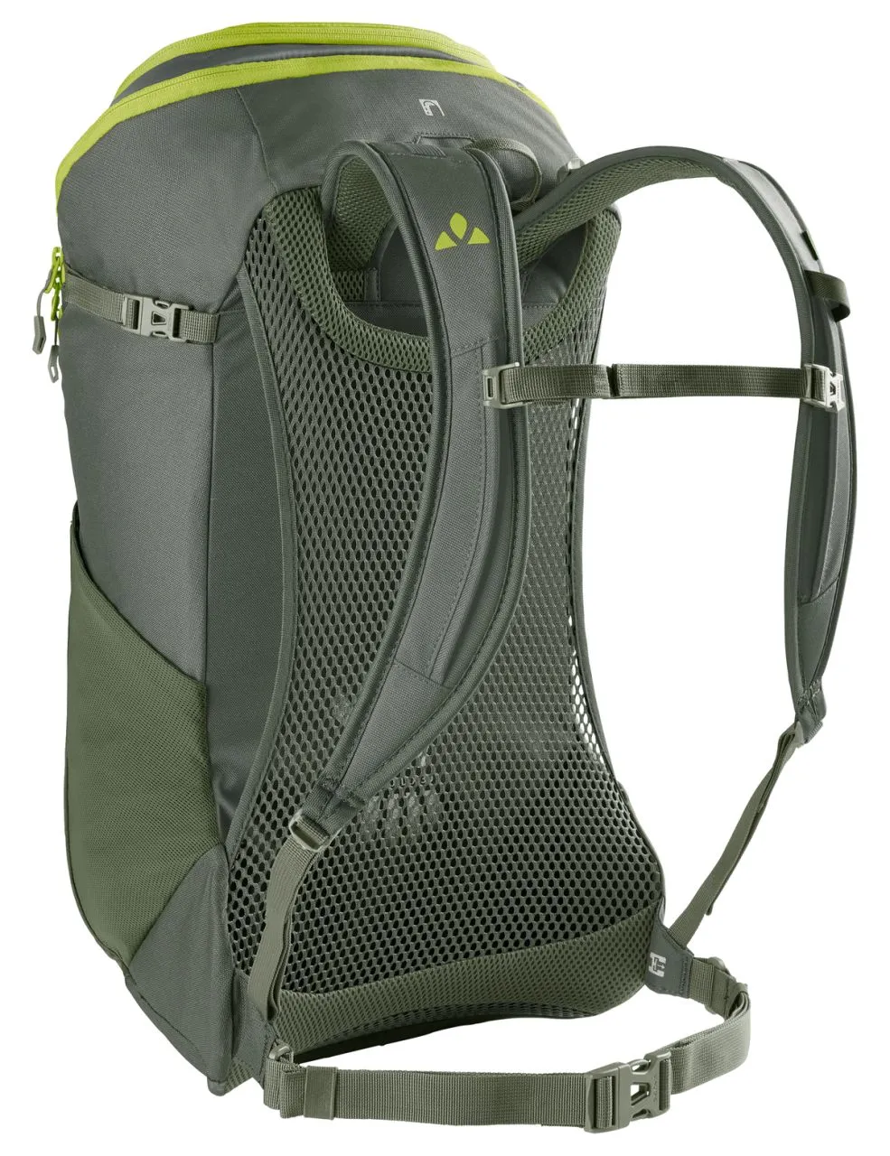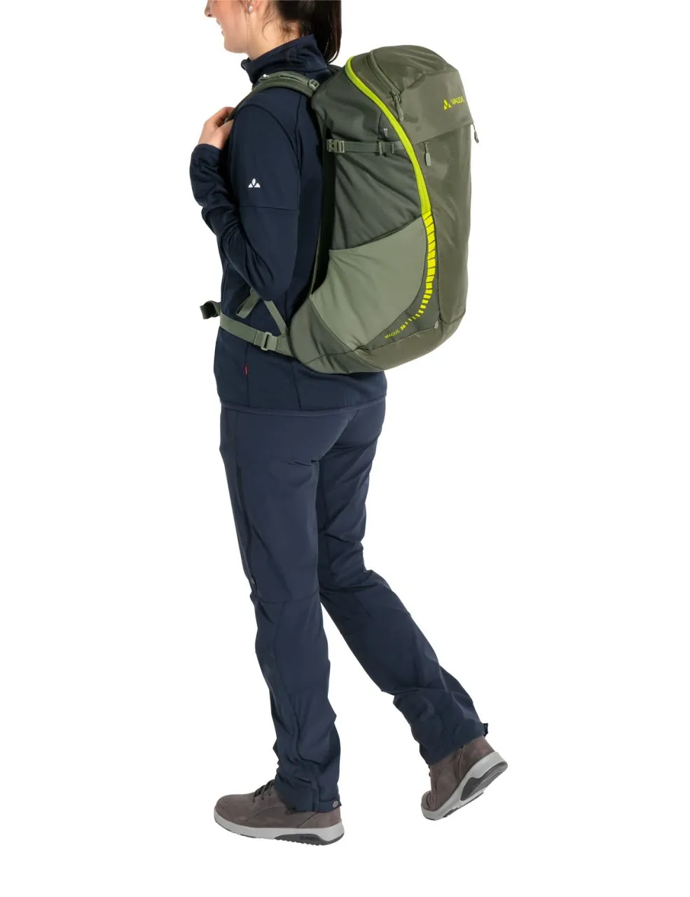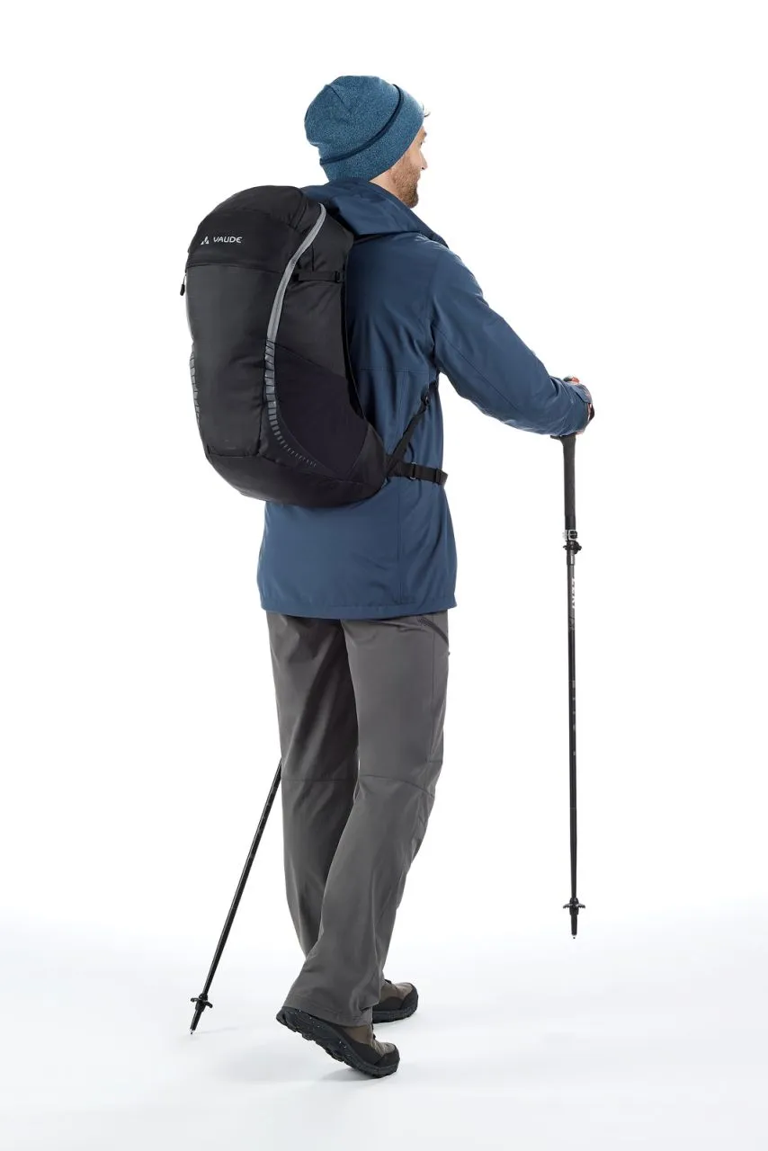 Magus 20 est parfait pour les randonneurs. Car ce sac à dos compact et confortable a plus d’une corde à son arc. Il séduit par son nouveau système de portage innovant Aeroflex 3D, qui offre au sac à dos une assise confortable sur les hanches et qui assure une circulation d’air optimale au niveau du dos sur les parcours physiques. Le harnais d’épaule réglable à la forme ergonomique ErgoShape assure en plus un confort au porter agréable. Les compartiments spacieux peuvent accueillir tous les effets indispensables sur un parcours de randonnée et le smartphone se voit attribuer un logement spécialement rembourré. Autre avantage : la ceinture abdominale de ce sac à dos de randonnée peut être retirée et escamotée de sorte que le sac peut aussi faire bon usage au quotidien. Les cyclistes sauront apprécier le support de clignotant de vélo à l’avant du sac à dos. Les compartiments élastiques latéraux peuvent accueillir une gourde ou des accessoires qui doivent rester à portée de main en cours de route. Une housse de pluie intégrée garantit le maintien du contenu au sec, même en cas de pluie diluvienne. Le label Green Shape de VAUDE garantit un produit écologique, fonctionnel et fabriqué dans des matériaux durables certifiés bluesign®.