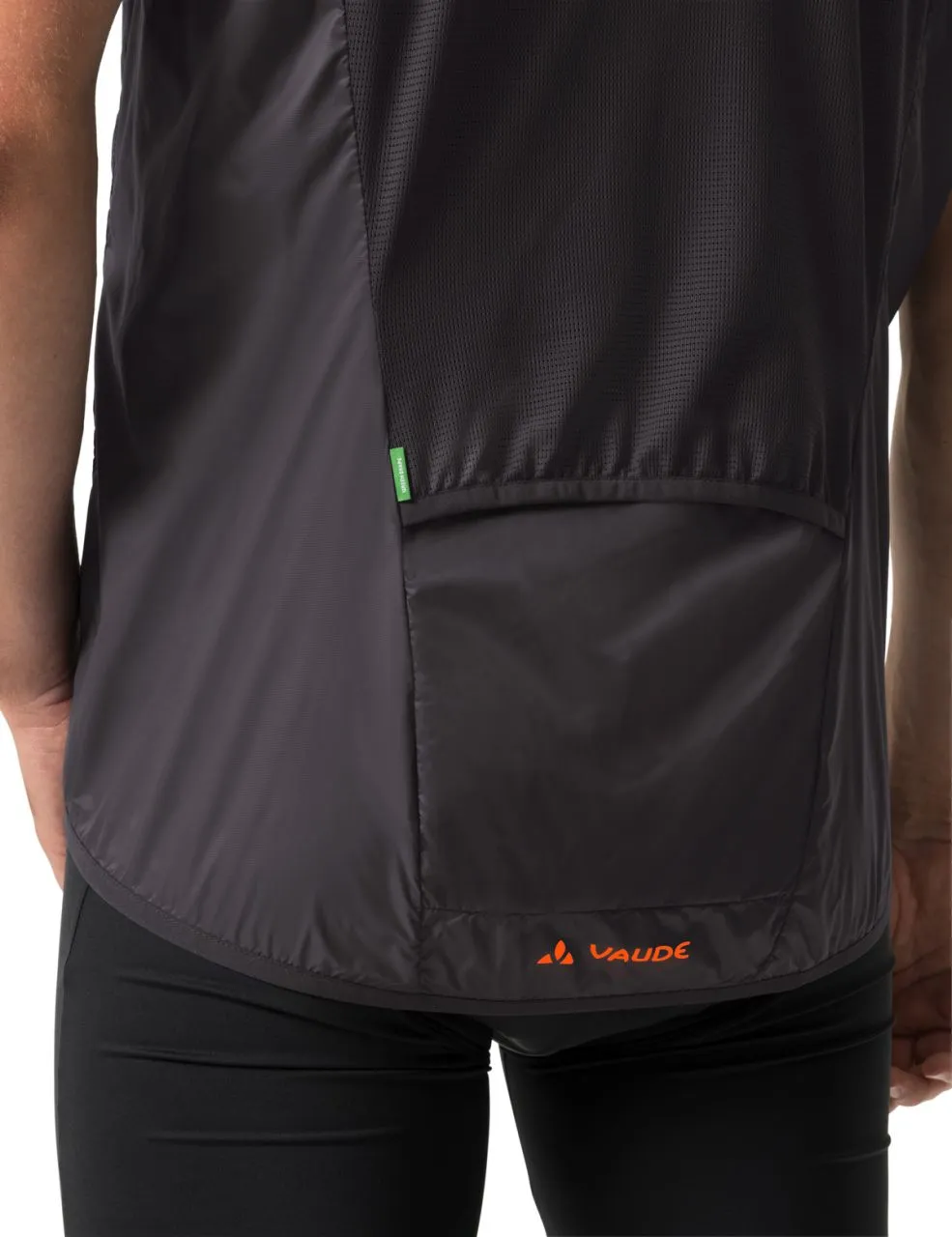 Le gilet de vélo Matera protège parfaitement les cyclistes ambitieux du vent lors des sorties. Elle ne pèse pas plus de 99 g et peut être comprimée dans sa propre poche au dos. Un empiècement en mesh perméable à l’air et élastique situé au dos assure la meilleure liberté de mouvement. La matière principale recyclée, coupe-vent est imperméabilisée avec la finition Eco Finish déperlante et antisalissures, très respirante et sèche rapidement. Des logos réfléchissants, les poignets et la ceinture élastiques complètent ce gilet multitalent. Le label Green Shape de VAUDE garantit un produit écologique, fonctionnel et fabriqué dans des matériaux durables certifiés bluesign®. En tant que membre Leader de l’organisme indépendant Fair Wear, VAUDE s’engage en faveur de conditions de travail et de salaires équitables. Ce produit est de plus climatiquement neutre : les émissions issues des matériaux, de la fabrication et du transport ont été déterminées de manière holistique et systématiquement réduites. Les émissions actuellement inévitables sont compensées par l’organisation indépendante à but non lucratif « myclimate ».