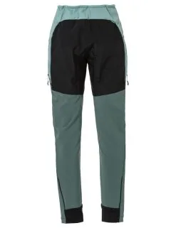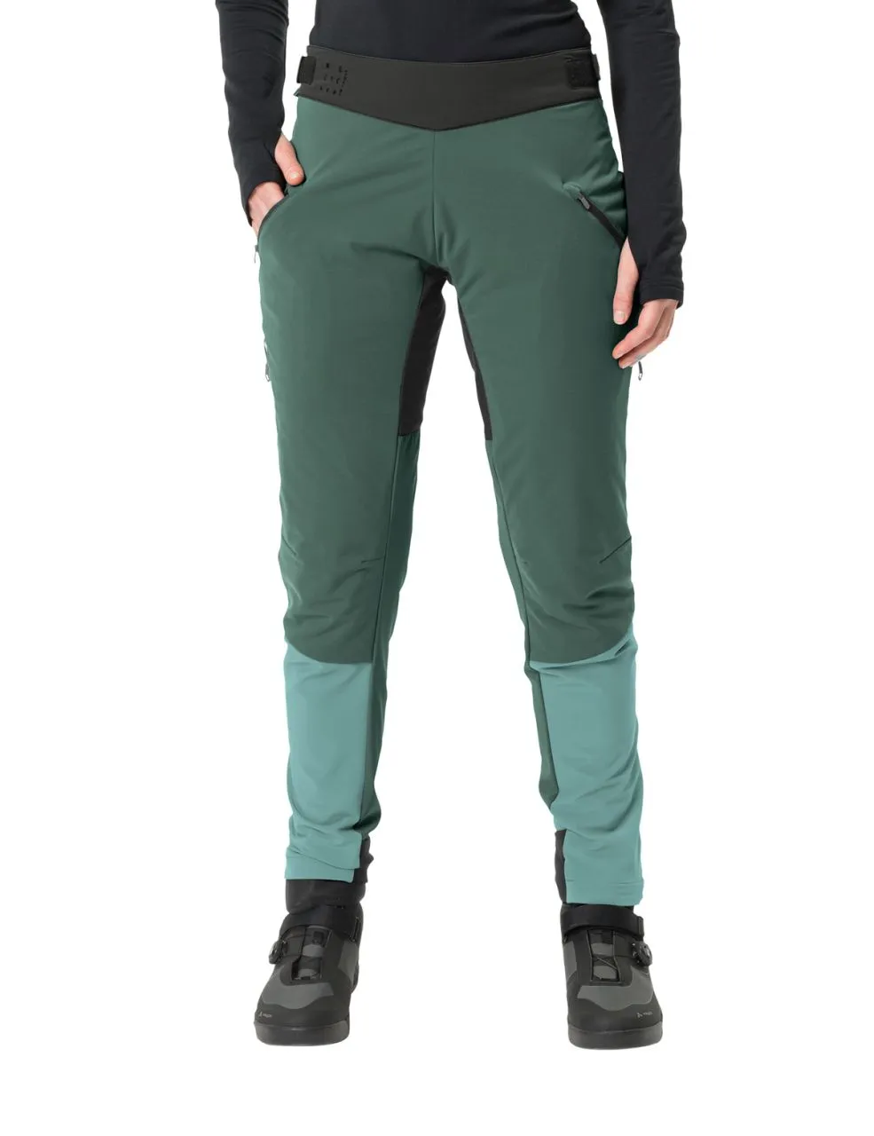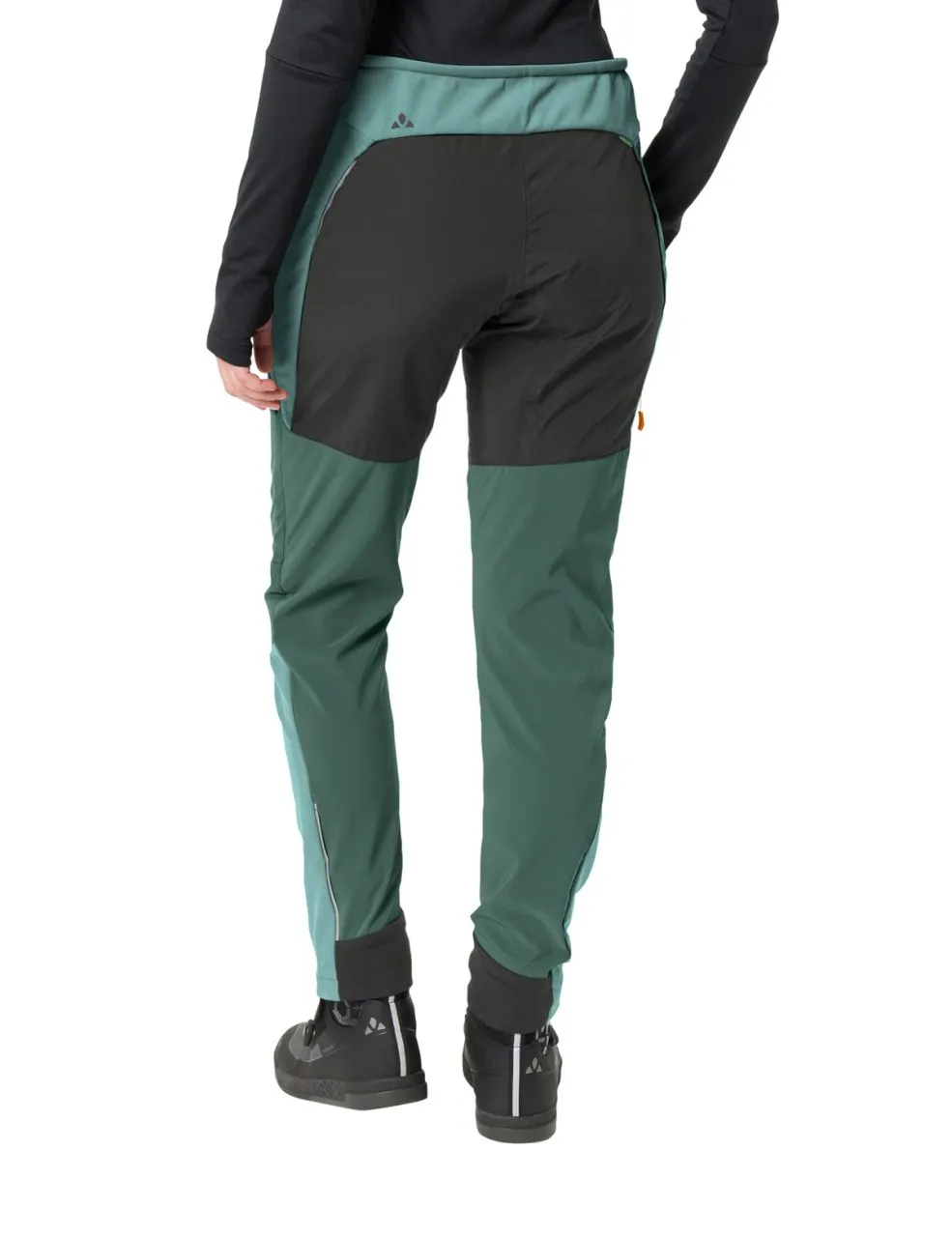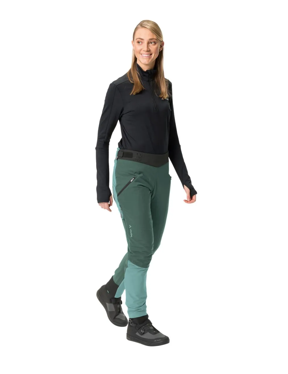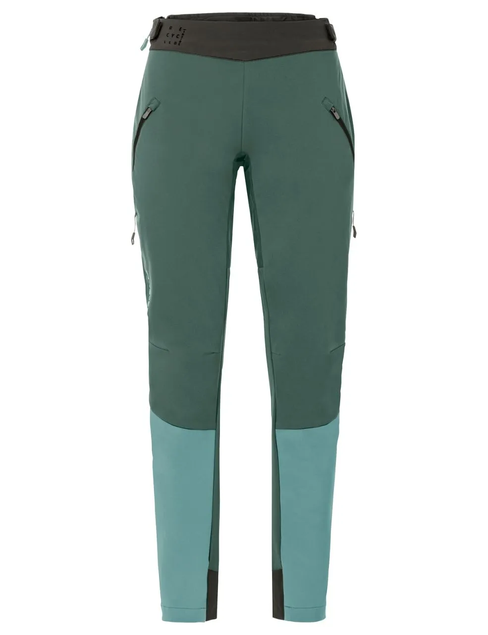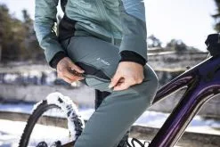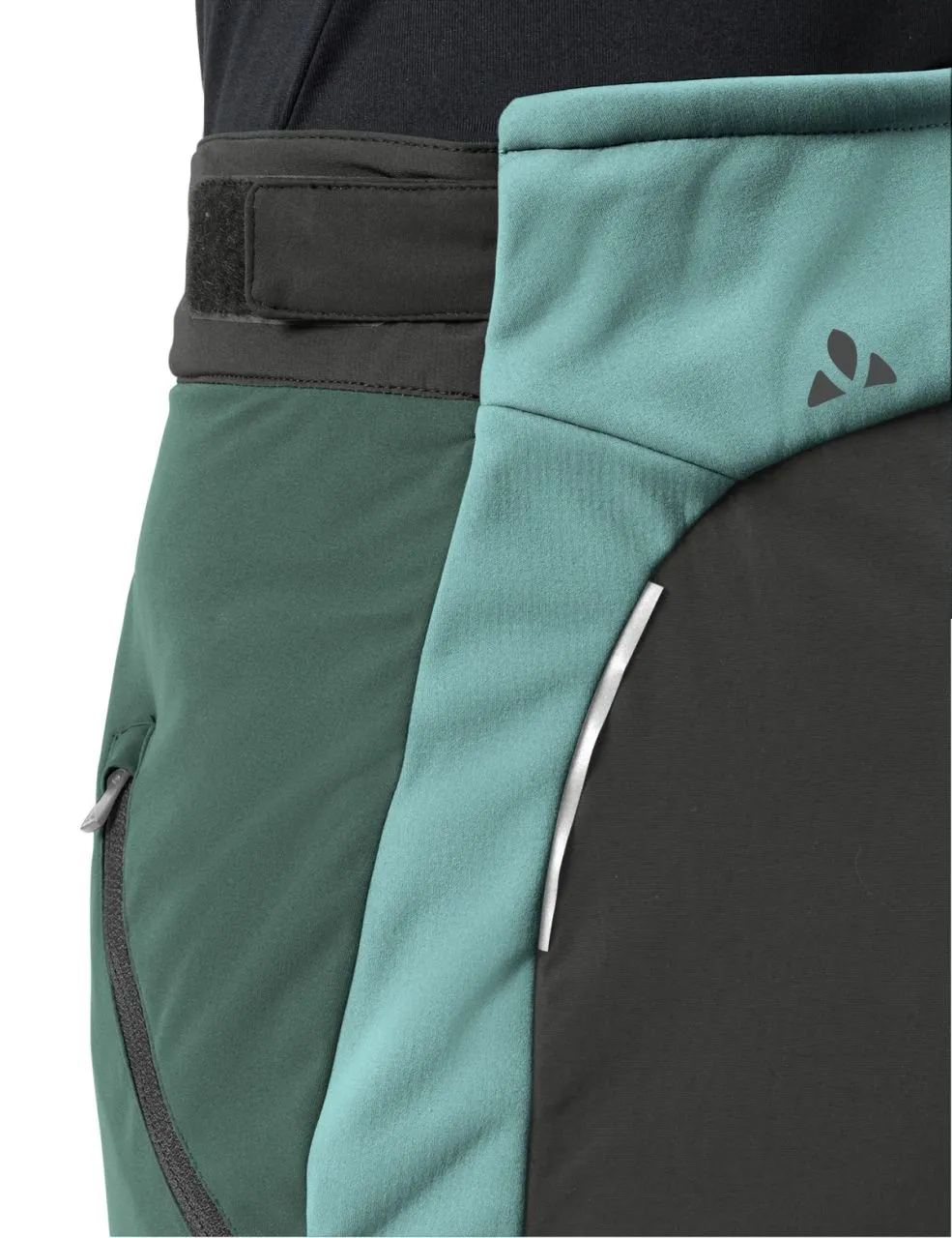 Pour toutes celles qui veulent pédaler en hiver bien protégées ! Ce pantalon de cyclisme hiver pour femme brave les basses températures. Il est doté à cet effet d’un rembourrage constitué en majeure partie de polyester recyclé en plus d’une softshell étanche au vent jusqu’aux genoux. Une matière stretch extensible dans 4 directions en polyester recyclé des genoux préformés au bas des jambes élastique et dans tout l’arrière assure une belle amplitude de mouvement et une bonne respirabilité. Le renfort au fessier imperméable grâce aux coutures soudées est composé de polyamide très résistant en confection 3 couches. Les deux poches frontales zippées sont décalées vers le bas pour rester bien accessibles en selle. Le pantalon séduit par une ceinture tout confort avec zip sur le côté, une coupe rehaussée à l’arrière et une matière élastique à l’avant. Des éléments réfléchissants à l’arrière des jambes et au niveau du fessier complètent son équipement. Le pantalon de cyclisme Minaki hiver pour femme est doté de la finition déperlante et antisalissures Eco Finish sans PFC. Le label Green Shape de VAUDE garantit un produit écologique, fonctionnel et fabriqué dans des matériaux durables certifiés bluesign®. En tant que membre élevé au rang de Leader de l’organisme indépendant Fair Wear, VAUDE s’engage en faveur de conditions de travail et de salaires équitables. Ce produit est de plus climatiquement neutre : les émissions issues des matériaux, des processus de fabrication et du transport ont été déterminées de manière holistique et systématiquement réduites. Les émissions actuellement inévitables ont été entièrement compensées par l’organisation indépendante à but non lucratif « myclimate ».