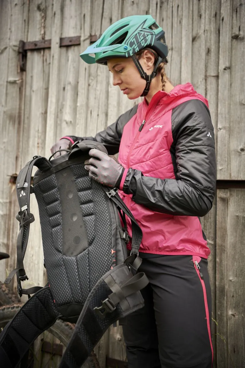 Cette veste isolante ultralégère est la tenue idéale sur les circuits VTT et fabriquée entièrement en matériaux recyclés. Elle est à peine plus lourde qu’une banane et sollicite encore moins de place dans le sac à dos. Grâce à la construction ultradense du matériau principal, la veste protège efficacement contre les courants d’air froids. Le léger rembourrage au niveau de la poitrine, des épaules et du haut des bras offre une protection thermique supplémentaire. Les bras préformés, les poignets élastiques et la capuche attenante complètent cet équipement de confort à merveille. De petits accessoires peuvent trouver place dans la poche intégrée du côté gauche. Ce produit est exempt de PFC et déperlant grâce à la finition Eco Finish. Le label Green Shape de VAUDE garantit un produit écologique, fonctionnel et fabriqué dans des matériaux durables certifiés bluesign®. Ce produit est de plus climatiquement neutre : les émissions issues des matériaux, de la fabrication et du transport ont été déterminées de manière holistique et systématiquement réduites. Les émissions actuellement inévitables sont compensées par l’organisation indépendante à but non lucratif « myclimate ».