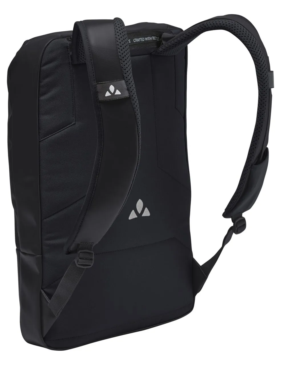 Petit, mais costaud ! Mineo Backpack 17 est le sac à dos urbain optimal pour un bagage réduit. Sa capacité de 17 litres permet de stocker un ordinateur portable 13,4″ et d’autres supports de données, avec une gourde, un bloc-notes, une veste de pluie et d’autres affaires pour la route. Tout y est parfaitement bien rangé. En cas d’excédent de bagages, la boucle extérieure (appelée « daisychain ») permet de fixer des affaires supplémentaires comme la pochette Mineo Tech Pouch, un cadenas ou une veste. Son matériau en a aussi à revendre, car il s’agit d’une matière polyester recyclée certifiée bluesign®, robuste, durable, déperlante et antisalissures. Des éléments réfléchissants, un porte-stylos et une fixation pour trolley sont d’autres accessoires pratiques. L’accès au compartiment principal est aisé grâce au grand zip asymétrique qui permet d’accéder facilement au fond du sac. Une grande poche zippée externe permet de conserver un téléphone, des mouchoirs et un porte-monnaie à portée de main. Le rembourrage dorsal et les bretelles ergonomiques assurent un grand confort au porter. Sur le palier, on retrouve aisément sa clé (ou sa carte) grâce au porte-clés élastique intégré à la bretelle sans devoir poser le sac à dos à terre. Le label Green Shape de VAUDE garantit un produit écologique, fonctionnel et fabriqué dans des matériaux durables. Ce produit est de plus climatiquement neutre : les émissions issues des matériaux, des processus de fabrication et du transport ont été déterminées de manière holistique et systématiquement réduites. Les émissions actuellement inévitables ont été entièrement compensées par l’organisation indépendante à but non lucratif « myclimate ».