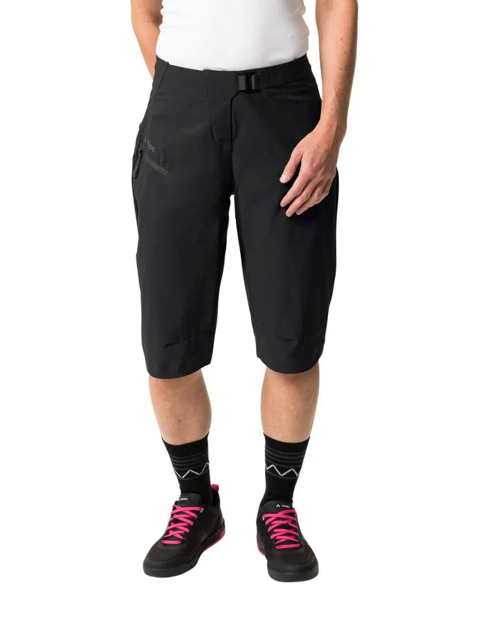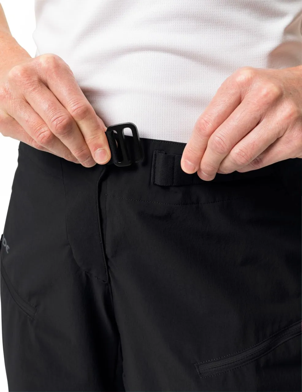 Rien ne s’oppose à l’action au bike park ou sur le trail avec le short sympa Moab Pro. Le short ultraconfortable VTT enduro pour femme est doté d’une ceinture 2 en 1 innovante et facile à ajuster, qui se passe entièrement d’un zip pour éviter les pressions et les pincements. La ceinture élastique est relevée à l’arrière pour que le short VTT enduro pour femme reste bien en place. La coupe progressive du genou préformé permet de rouler avec des protecteurs et les perforations à l’intérieur des jambes assurent une ventilation idéale. 2 poches en biais basses zippées sont accessibles en selle et assurent de plus une fonction de ventilation. Une méthode certifiée du bilan massique est appliquée au cours de la fabrication de la matière ultrarobuste, légère et très élastique à la fois. De l’huile de pyrolyse qui entre dans la fabrication du polyamide conventionnel est obtenue à partir de pneus usagés. Le recyclage chimique permet de réduire les émissions de CO2 de 60 %. Le short pour femme Moab Pro est doté de la finition déperlante et antisalissures Eco Finish sans PFC. Ce produit est de plus climatiquement neutre : les émissions issues des matériaux, de la fabrication et du transport ont été déterminées de manière holistique et systématiquement réduites. Les émissions actuellement inévitables sont compensées par l’organisation indépendante à but non lucratif « myclimate ». Le label Green Shape de VAUDE garantit un produit écologique, fonctionnel et fabriqué dans des matériaux durables certifiés bluesign®.