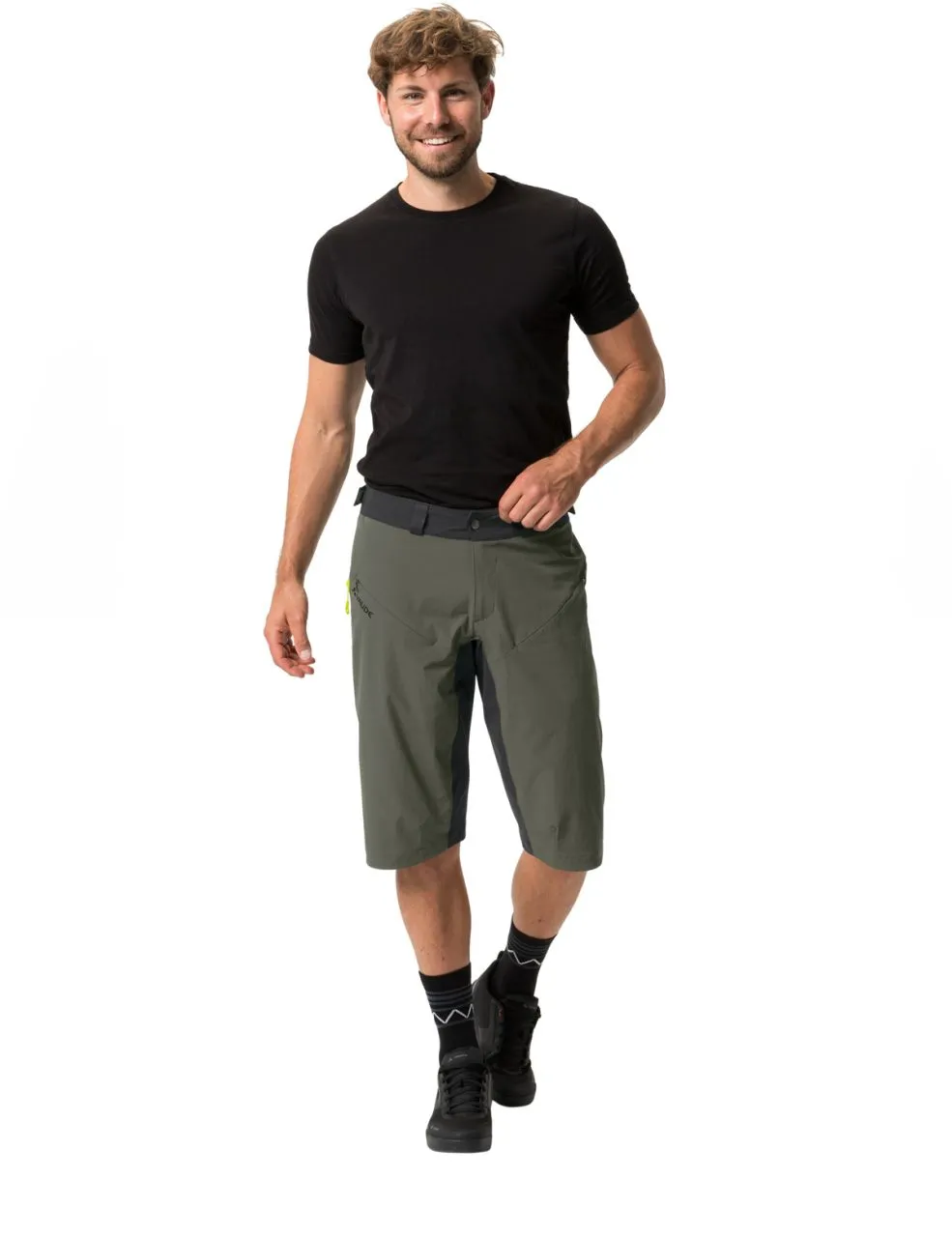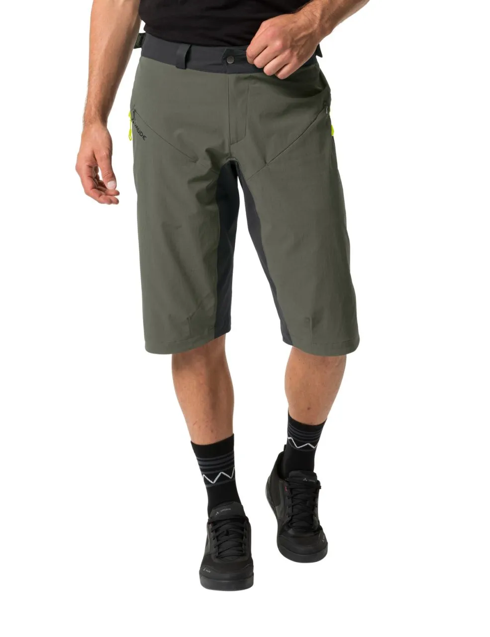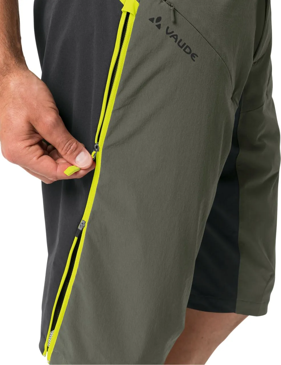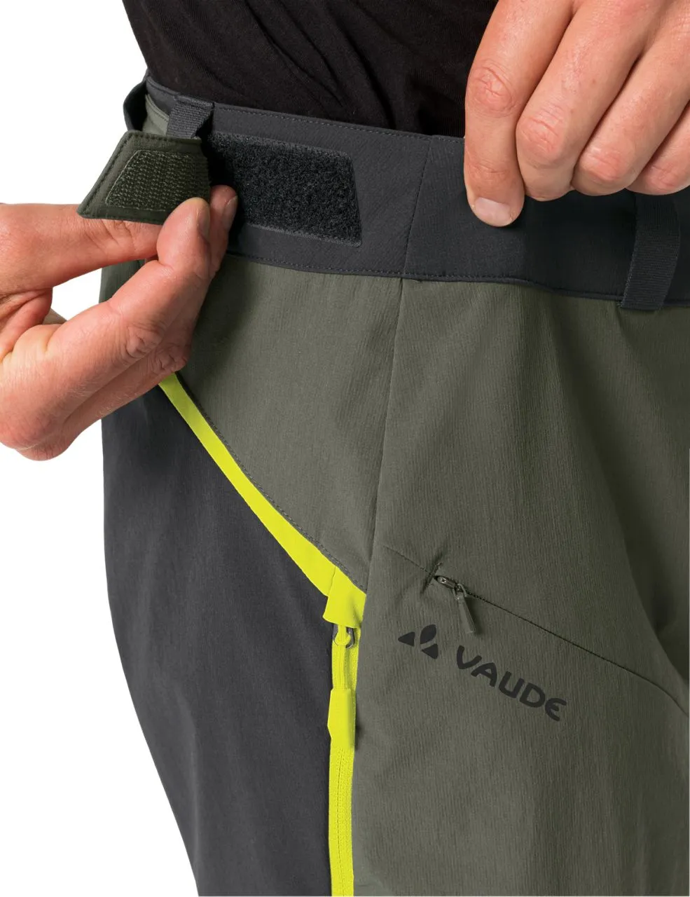 Chaque session d’enduro est un vrai plaisir avec le short décontracté VTT Moab de la 5e génération. Le polyamide léger et recyclé avec une teneur en élasthanne est coupe-vent avec la fonction Windproof 80 et particulièrement robuste. Le pantalon VTT descend au-dessus du genou ; un zip bidirectionnel optimisé qui tient lieu également d’aération permet de régler la largeur de l’ouverture afin de faciliter le port des genouillères. Sa taille haute avec ouverture réglable par velcro dans le dos permet au pantalon de cyclisme court agréablement élastique pour homme de rester en place. 2 poches en biais zippées servant à la fois d’aération complètent les prestations. Le short Moab V est doté de la finition déperlante et antisalissures Eco Finish sans PFC. Le label Green Shape de VAUDE garantit un produit écologique, fonctionnel et fabriqué dans des matériaux durables certifiés bluesign®. En tant que membre Leader de l’organisme indépendant Fair Wear, VAUDE s’engage en faveur de conditions de travail et de salaires équitables. Le short homme est de plus climatiquement neutre : les émissions issues des matériaux, de la fabrication et du transport ont été déterminées de manière holistique et systématiquement réduites. Les émissions actuellement inévitables sont compensées par l’organisation indépendante à but non lucratif « myclimate ».