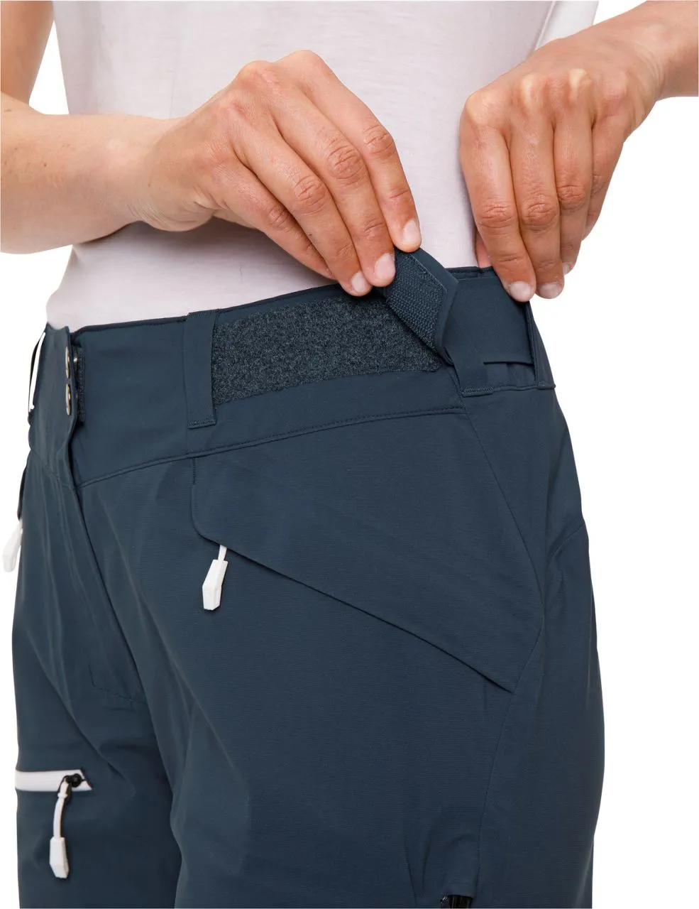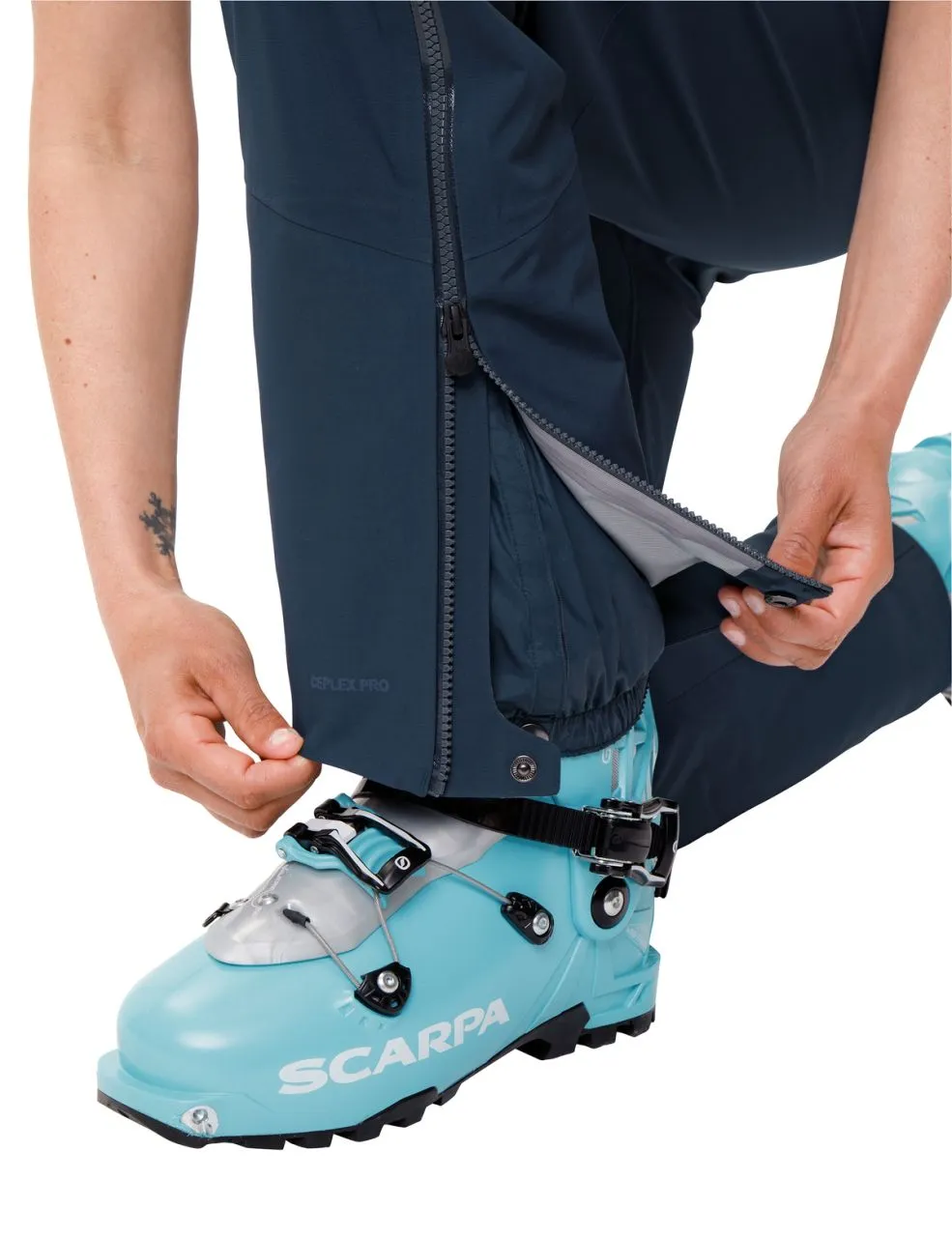 Une protection imperméable fiable est incontournable sur les randonnées à ski exigeantes et longues traversées sur terrain alpin. Le pantalon Monviso 3L Pants pour femme résiste à la neige, la glace ou aux parois sans aucun compromis en matière de performance et de durabilité. Étanche à l’eau et au vent et extrêmement respirante, la matière ultra fonctionnelle est certifiée selon la norme environnementale la plus stricte bluesign®. Ce pantalon hardshell séduit par ses zips de ventilation longs et étanches à l’eau dans les ascensions physiques et quand les températures grimpent. La ceinture est réglable en largeur et munie de passants, le dos est coupé en taille haute pour empêcher la formation de ponts thermiques quand les jambes sont repliées en appui sur la paroi ou en position basse. Une grande poche latérale avec zip étanche à l’eau permet de conserver téléphone, bonnet ou une barre de céréales ; les poches en biais avant sont disposées de façon à rester accessibles malgré le port d’un harnais. Le bas des jambes est renforcé en matière Cordura résistante aux coupures, les guêtres intérieures protègent contre la pénétration de la poudreuse en descente et le réglage au bas des jambes s’adapte à toutes les chaussures de ski de randonnée. La tenue durable Monviso permet aux alpinistes de profiter pleinement de la montagne, en dépit des éléments : de la matière hardshell à la polaire fonctionnelle et douillette en passant par l’isolation légère et chauffante, nous offrons une tenue bien conçue et entièrement assortie. Le label Green Shape de VAUDE garantit un produit écologique, fonctionnel et fabriqué dans des matériaux durables.
