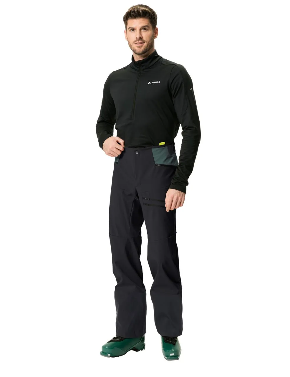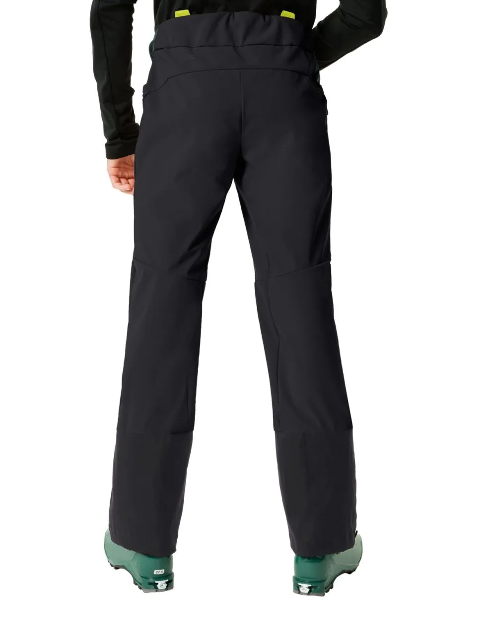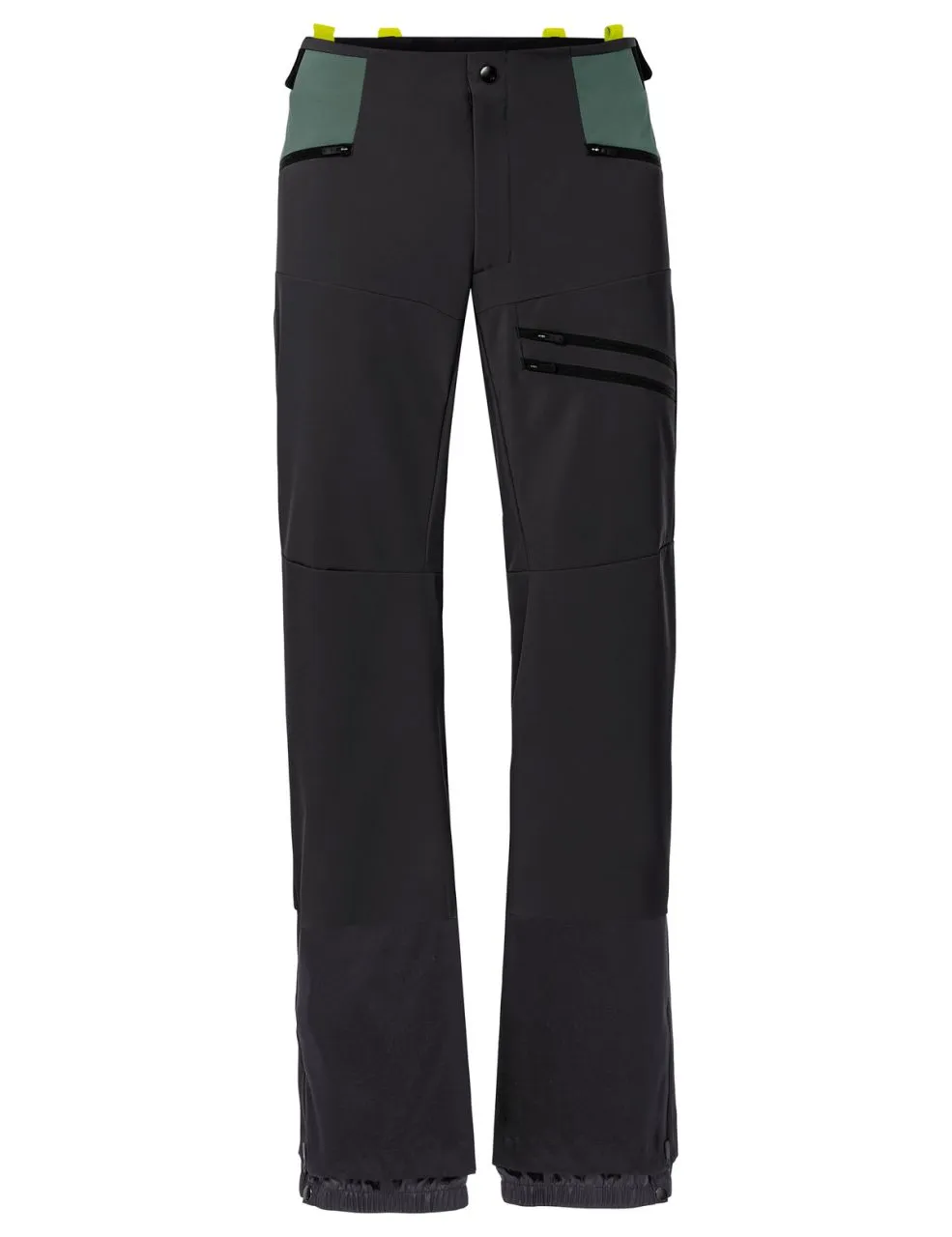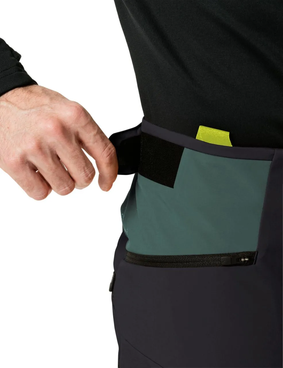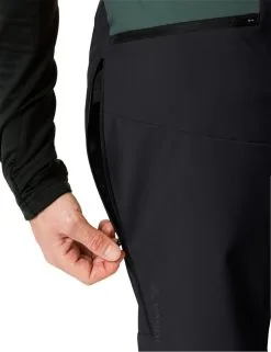 Le vent de la liberté ! Le pantalon softshell Monviso très léger pour homme séduit par un très haut confort au porter et une belle amplitude de mouvement sur les longs parcours de ski exigeants sur terrain alpin. La matière déperlante de ce pantalon de randonnée à ski homme est entièrement étanche au vent tout en restant élastique et hautement respirante. Les longs zips de ventilation latéraux apportent un rafraichissement agréable lors des ascensions éprouvantes, les poches zippées disposées plus bas permettent un accès aisé même avec le port d’un harnais. La ceinture à la coupe relevée dans le dos est confortable et réglable en largeur et les genoux préformés apportent une liberté de mouvement supplémentaire. Le bas des jambes zippé est protégé par un matériau Cordura® robuste contre les arêtes coupantes et s’enfile aisément sur les bottes de ski. Une poche latérale appliquée avec zip permet de conserver bonnet, téléphone ou barre de céréales. Le pantalon softshell homme est principalement composé de matériau recyclé et apporte ainsi une précieuse contribution en faveur de l’environnement. En tant que membre élevé au rang de Leader de l’organisme indépendant Fair Wear, VAUDE s’engage en faveur de conditions de travail et de salaires équitables. Ce produit est de plus climatiquement neutre : les émissions issues des matériaux, des processus de fabrication et du transport ont été déterminées de manière holistique et systématiquement réduites. Les émissions actuellement inévitables ont été entièrement compensées par l’organisation indépendante à but non lucratif « myclimate ».