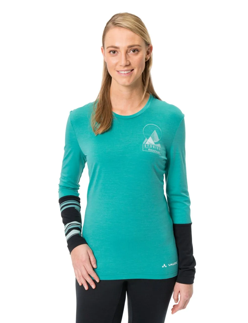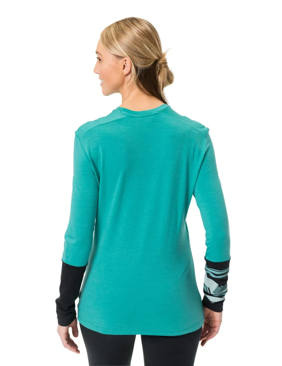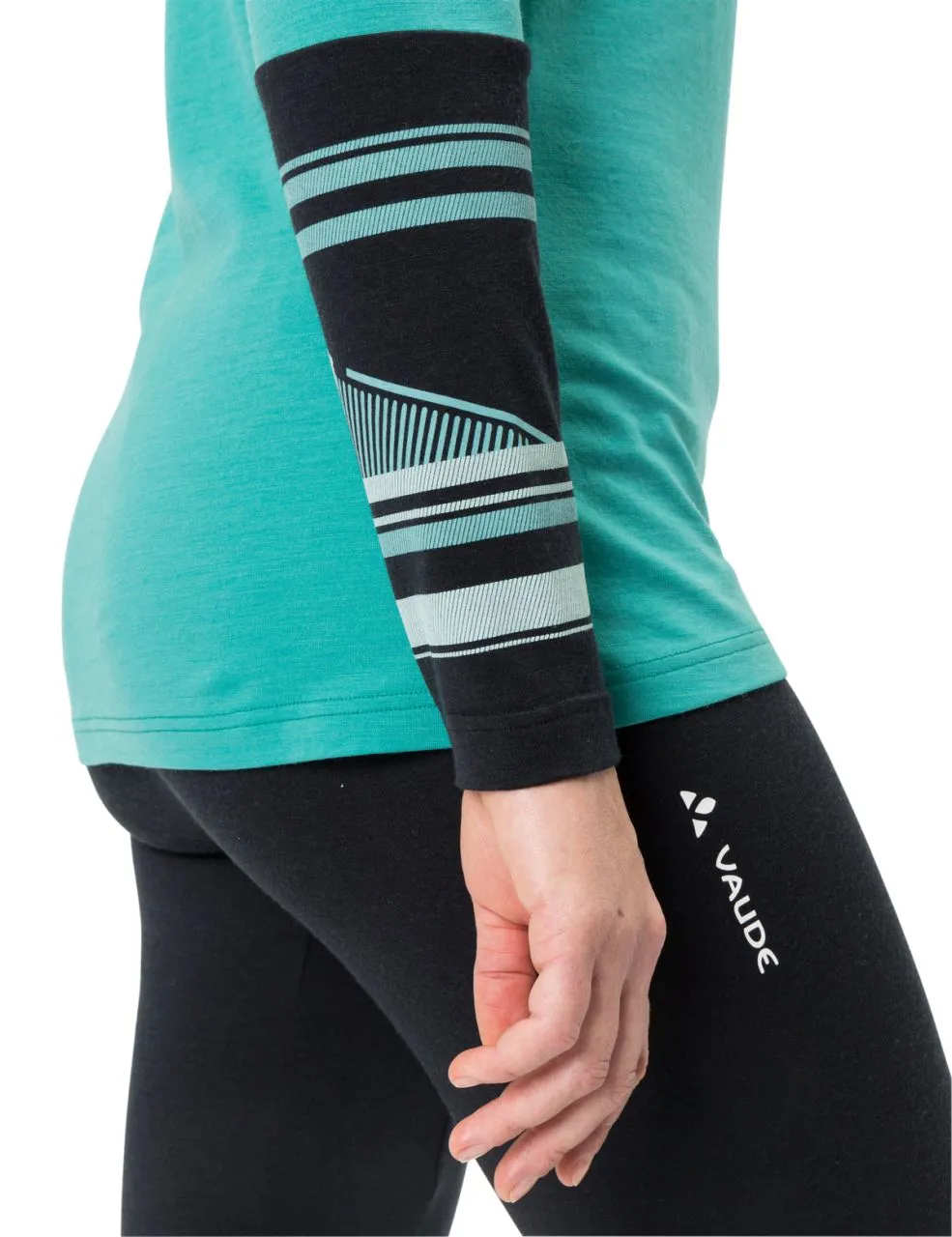 Véritable seconde peau, c’est un apport de chaleur supplémentaire. Ce maillot à manches longues pour femme au motif imprimé inspiré de la montagne est composé à 77 % de laine ultrafine mérinos. La laine certifiée Responsible Wool Standard (RWS) diffuse une chaleur agréable, absorbe l’humidité et régule l’équilibre thermique de manière naturelle. C’est une matière première durable et renouvelable agréable au contact de la peau. L’ajout des fibres polyester (23 %) dans le maillot à manches longues femme assure par ailleurs le séchage rapide et la résistance de ce sous-vêtement fonctionnel. Fabriqué en Europe. En tant que membre élevé au rang de Leader de l’organisme indépendant Fair Wear, VAUDE s’engage en faveur de conditions de travail et de salaires équitables. Ce produit est de plus climatiquement neutre : les émissions issues des matériaux, des processus de fabrication et du transport ont été déterminées de manière holistique et systématiquement réduites. Les émissions actuellement inévitables ont été entièrement compensées par l’organisation indépendante à but non lucratif « myclimate ».