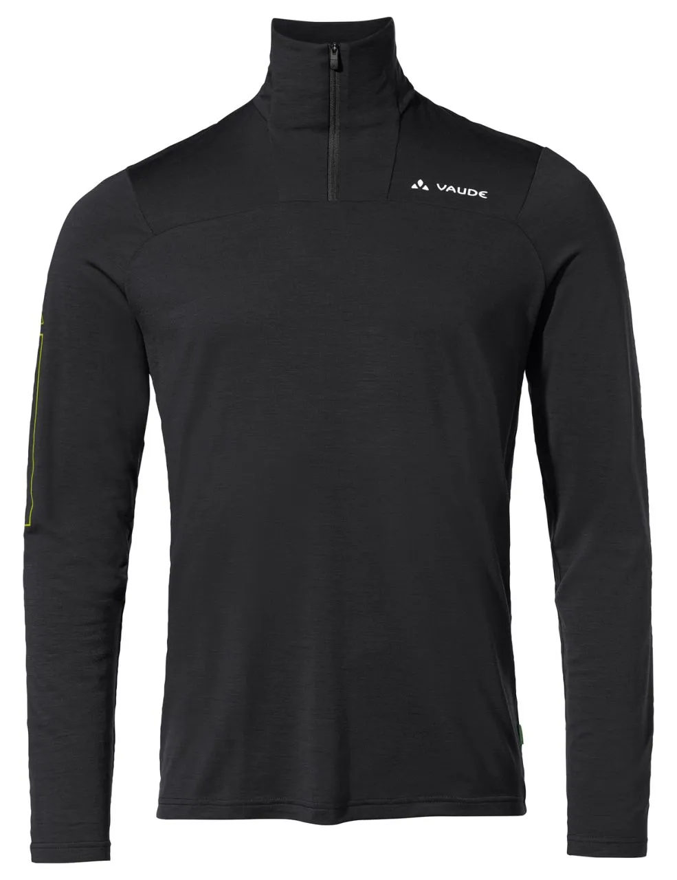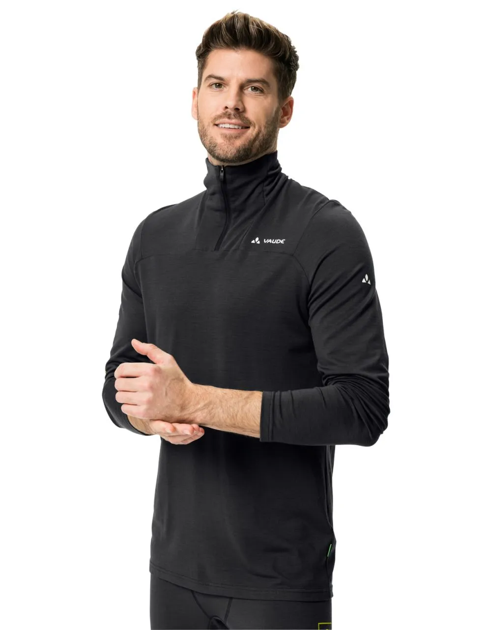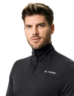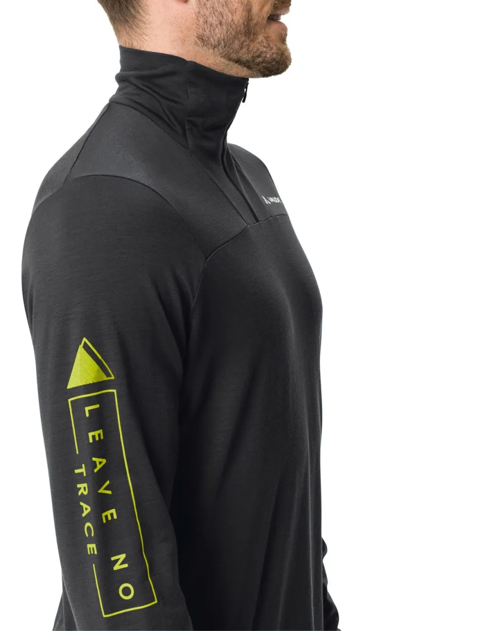 Véritable seconde peau, c’est un apport de chaleur supplémentaire. Ce pull homme à motif imprimé décoratif et petite fermeture zippée est composé à 77 % de laine ultrafine issue de moutons mérinos. La laine certifiée Responsible Wool Standard (RWS) diffuse une chaleur agréable, absorbe l’humidité et régule l’équilibre thermique de manière naturelle. C’est une matière première durable qui se renouvelle rapidement et incroyablement douce au contact de la peau. L’ajout des fibres polyester (23 %) assure par ailleurs le séchage rapide et la résistance de ce sous-vêtement fonctionnel homme. Fabriqué en Europe. En tant que membre élevé au rang de Leader de l’organisme indépendant Fair Wear, VAUDE s’engage en faveur de conditions de travail et de salaires équitables. Ce produit est de plus climatiquement neutre : les émissions issues des matériaux, des processus de fabrication et du transport ont été déterminées de manière holistique et systématiquement réduites. Les émissions actuellement inévitables ont été entièrement compensées par l’organisation indépendante à but non lucratif « myclimate ».