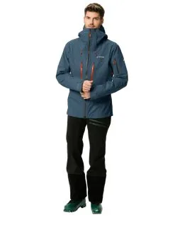 Protection imperméable efficace pour les randonnées à ski exigeantes et les longues traversées sur terrain alpin. La veste Monviso 3L Jacket pour homme résiste à la neige, la glace ou aux parois sans aucun compromis en matière de performance et de durabilité. Le matériau partiellement recyclé et certifié bluesign® est entièrement étanche à l’eau et au vent et extrêmement respirant. Cette veste hardshell séduit par son concept de ventilation raffiné dans les ascensions physiques et quand les températures grimpent. Des zips de ventilation à l’avant et à l’arrière des manches et de manipulation aisée garantissent une ventilation maximale, même avec le port d’un sac à dos. Sa coupe est parfaitement adaptée aux besoins de l’alpinisme : lors des escalades, même longues, la veste ne sort pas du harnais ; la capuche ajustable à col haut peut se porter avec un casque et protège des chutes de neige et du vent. L’extension du col renforce le confort au porter élevé. Les fermetures des poignets et de la ceinture sont réglables en largeur. Les deux poches à l’avant offrent un bel espace de rangement et il est possible de glisser son forfait dans la poche de bras. La poche de sécurité sur l’intérieur offre une possibilité supplémentaire de rangement. La veste Monviso 3L allie une belle liberté de mouvement à un confort au porter extrême et à des fonctionnalités astucieuses. La tenue durable Monviso permet aux alpinistes de profiter pleinement de la montagne, en dépit des éléments : de la matière hardshell à la polaire fonctionnelle et douillette en passant par l’isolation légère et chauffante, nous offrons une tenue bien conçue et entièrement assortie. Le label Green Shape de VAUDE garantit un produit écologique, fonctionnel et fabriqué dans des matériaux durables.