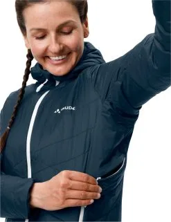 Sur les randonnées à ski ambitieuses et les longues traversées de formations alpines, une veste isolante très légère et compressible tout en restant chaude fait partie du contenu indispensable à emporter dans son sac à dos. La technologie PrimaLoft® Cross Core™ innovante est garante d’un rapport chaleur/poids exceptionnel avec la veste Monviso Insulation Jacket pour femme. Car l’isolant haut de gamme PrimaLoft® Gold Insulation est associé à la technologie Aérogel de l’aérospatiale dans cette combinaison. L’isolant tient jusqu’à 50 % plus chaud que l’isolant classique PrimaLoft® Gold pour le même poids. Le garnissage est composé en outre de matériau principalement recyclé. La veste Women’s Monviso Insulation Jacket est le parfait complément à la veste Women’s Monviso 3L Jacket : les poches ont été disposées directement en dessous des zips de ventilation de la couche hardshell pour un accès optimal. Une ventilation zippée supplémentaire et invisible sur la poitrine apporte un rafraichissement agréable dans les ascensions pénibles, même avec le port d’un sac à dos. La veste en fibres synthétiques est compressible dans sa poche intérieure pour se ranger dans n’importe-quel sac à dos. La matière principale est certifiée selon la norme environnementale la plus stricte bluesign®. Le label Green Shape de VAUDE garantit un produit écologique, fonctionnel et fabriqué dans des matériaux durables.