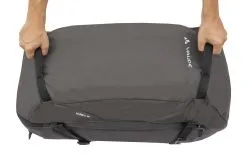 Pour tous les globe-trotteurs : le sac à dos de voyage spacieux Mundo 50+ est fabriqué dans un matériau principalement recyclé et respecte véritablement l’environnement. Il dispose en outre d’un système de portage confortable qui se dissimule en un rien de temps sous un cache protecteur quand il n’est pas requis : ceci en fait le compagnon idéal des déplacements en avion et transports collectifs. Pratique sur les quatre chemins : la livraison inclut un daypack très léger (« à emporter »). On peut y ranger ses objets les plus précieux pour les emporter dans son bagage à main ou en excursion. Pour accéder le plus rapidement possible au contenu du sac à dos de voyage de taille moyenne, le compartiment principal peut s’ouvrir sur l’avant à l’aide d’un zip caché. Un ordinateur portable et des accessoires se laissent ranger en toute sécurité dans l’organiseur pratique de bureau. Le sac à dos bénéficie ici d’une conception empêchant les voleurs d’accéder immédiatement à la fermeture éclair, ce qui constitue un atout de taille aux aéroports et autres endroits soumis à l’insécurité. Deux poignées supplémentaires facilitent le levage et le rangement du sac à dos. Le label Green Shape de VAUDE garantit un produit écologique, fonctionnel et fabriqué dans des matériaux durables certifiés bluesign®. En tant que membre Leader de l’organisme indépendant Fair Wear, VAUDE s’engage en faveur de conditions de travail et de salaires équitables. Ce produit est de plus climatiquement neutre : les émissions issues des matériaux, de la fabrication et du transport ont été déterminées de manière holistique et systématiquement réduites. Les émissions actuellement inévitables sont compensées par l’organisation indépendante à but non lucratif « myclimate ».