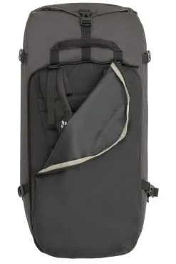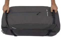 Le sac à dos de voyage spacieux Mundo 65+ est idéal pour les globe-trotteurs respectueux de l’environnement ! Il est principalement fabriqué en matériau recyclé et dispose en outre d’un système de portage confortable qui se dissimule en un rien de temps sous un cache protecteur quand il n’est pas requis : ceci en fait le compagnon idéal des déplacements en avion et transports collectifs. Pratique sur les quatre chemins : la livraison inclut un daypack très léger (« à emporter »). On peut y ranger ses objets les plus précieux pour les emporter dans son bagage à main ou en excursion. Pour accéder le plus rapidement possible au contenu du grand sac à dos de voyage, le compartiment principal peut s’ouvrir sur l’avant à l’aide d’un zip caché. Un ordinateur portable et des accessoires se laissent ranger en toute sécurité dans l’organiseur pratique de bureau. Le sac à dos bénéficie ici d’une conception empêchant les voleurs d’accéder immédiatement à la fermeture éclair, ce qui constitue un atout de taille aux aéroports et autres endroits soumis à l’insécurité. Deux poignées supplémentaires facilitent le levage et le rangement du sac à dos. Le label Green Shape de VAUDE garantit un produit écologique, fonctionnel et fabriqué dans des matériaux durables certifiés bluesign®. En tant que membre Leader de l’organisme indépendant Fair Wear, VAUDE s’engage en faveur de conditions de travail et de salaires équitables. Ce produit est de plus climatiquement neutre : les émissions issues des matériaux, de la fabrication et du transport ont été déterminées de manière holistique et systématiquement réduites. Les émissions actuellement inévitables sont compensées par l’organisation indépendante à but non lucratif « myclimate ».