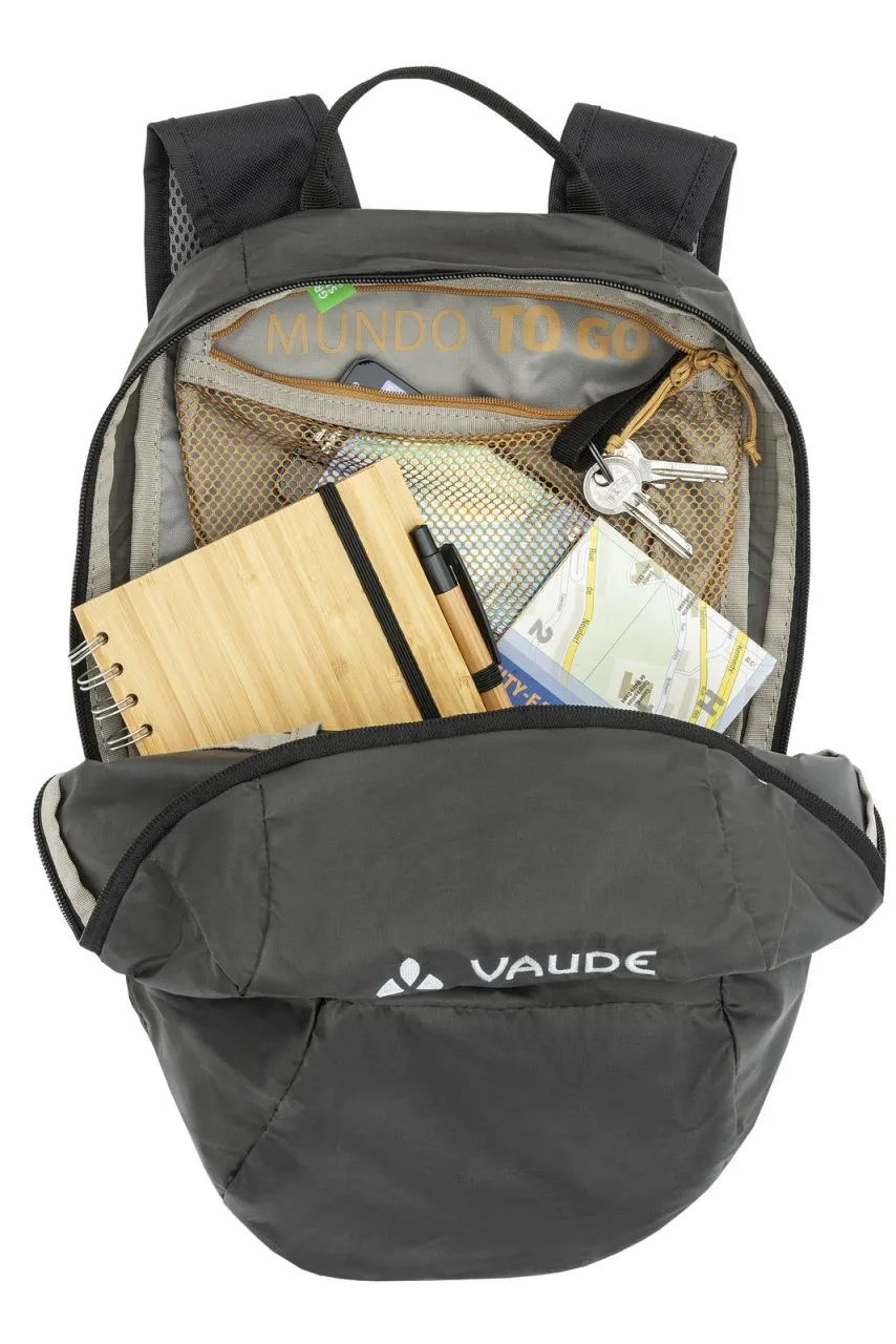 Ce daypack compact est le compagnon idéal de chaque voyage. Il se fait tout petit dans sa propre poche intérieure et ne prend aucune place dans les bagages. Mais quand il s’agit d’explorer les alentours une fois parvenu à destination, le Mundo To Go déploie toutes ses capacités : Son volume de 12 litres peut accueillir toutes les choses importantes, les objets de valeur trouvant place dans la poche intérieure séparée et les gourdes pouvant se loger dans les compartiments externes latéraux. Le dos en mesh rembourré et la sangle de poitrine réglable en hauteur garantissent une assise confortable et font du Mundo To Go le compagnon de voyage idéal. Le sac à dos est fabriqué en respect des critères environnementaux stricts de la norme bluesign®. Le label Green Shape de VAUDE garantit un produit écologique, fonctionnel et fabriqué dans des matériaux durables.