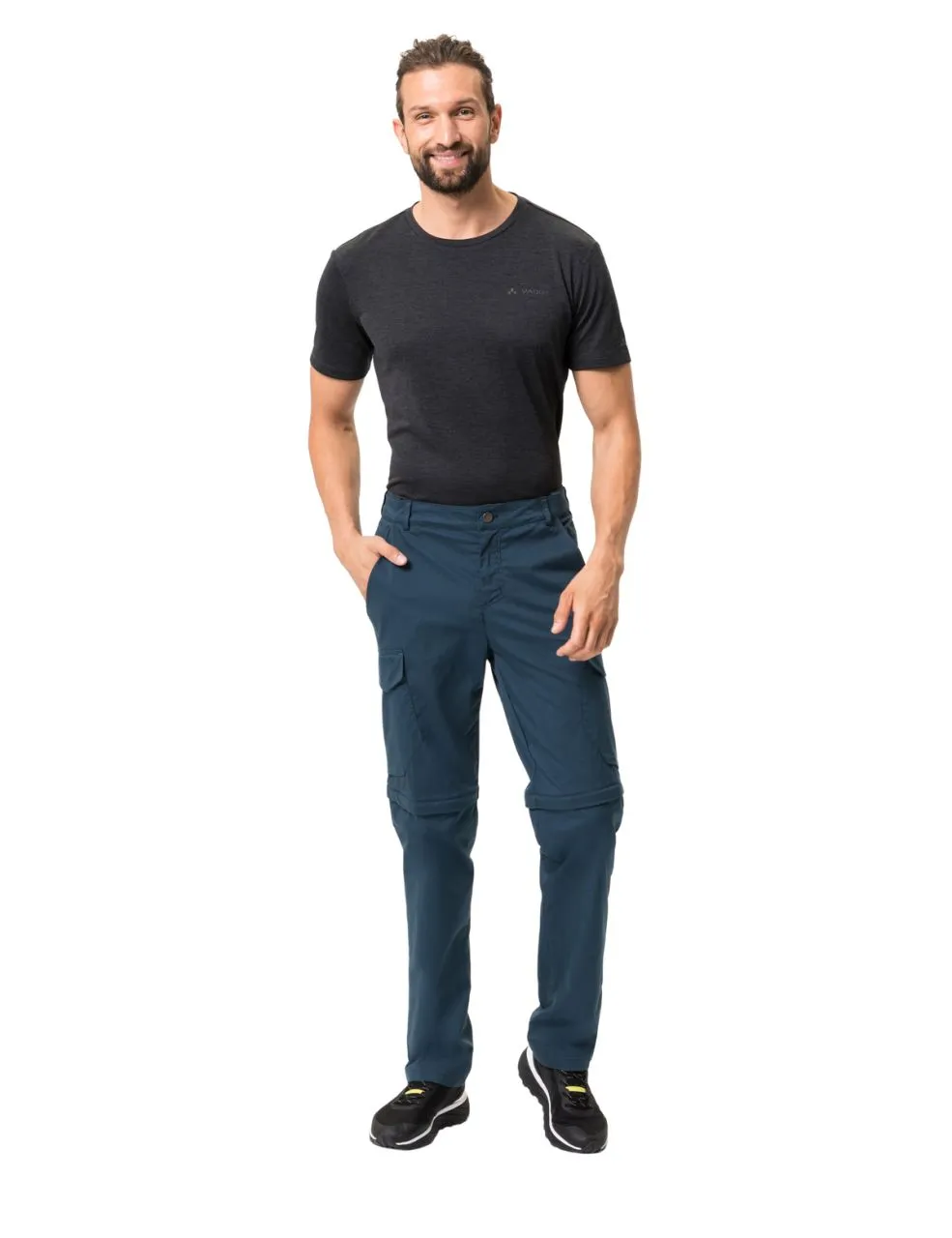 Long ou court ? La question ne se pose plus avec le pantalon cargo convertible Neyland pour homme au look sympa. Car le pantalon cargo pour homme se transforme en short en quelques gestes et convient ainsi parfaitement à la randonnée, au voyage ou au camping. Les deux grandes poches latérales confèrent son look cargo au pantalon, qui est muni de deux poches supplémentaires et d’une poche arrière spacieuse pour les affaires précieuses. Le mélange de matières ingénieux et ultradurable en coton, polyester recyclé et élasthanne offre au pantalon cargo pour homme un super confort, une grande liberté de mouvement grâce à la teneur en stretch et sèche rapidement. La ceinture élastique assure également un grand confort. Le label Green Shape de VAUDE garantit un produit écologique et fonctionnel fabriqué dans des matériaux durables certifiés bluesign®. Ce produit est de plus climatiquement neutre : les émissions issues des matériaux, de la fabrication et du transport ont été déterminées de manière holistique et systématiquement réduites. Les émissions actuellement inévitables sont compensées par l’organisation indépendante à but non lucratif « myclimate ».