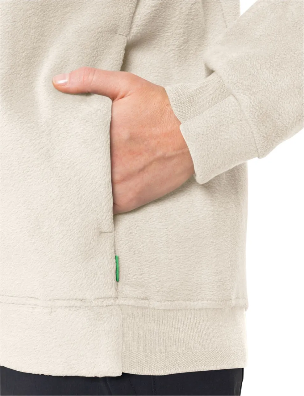 Ce pull à capuche douillet en polaire pour femme est ultra confortable, fonctionnel et réchauffe tant dehors qu’à l’intérieur – c’est la tenue indispensable pour la saison froide. L’intérieur moelleux doux au toucher dispense une chaleur agréable. Neyland Fleece Hoody pour femme séduit par sa coupe simple et épurée. Les bords côtes aux poignets, à la capuche et à la ceinture confèrent un look décontracté et sportif façon sweatshirt. Les mains peuvent se réchauffer dans les deux poches. La veste polaire femme avec fermeture éclair est la tenue parfaite en rando et en balade, mais convient naturellement aussi pour se réchauffer à sa table de bureau en télétravail. La veste polaire douillette pour femme est écologique et sa fabrication intégrant jusqu’à 60 % de polyester recyclé préserve les ressources. Cette tenue bien-être multiusage est appelée à devenir le nouveau hoody préféré. Le label Green Shape de VAUDE garantit un produit écologique, fonctionnel et fabriqué dans des matériaux durables certifiés bluesign®. En tant que membre élevé au rang de Leader de l’organisme indépendant Fair Wear, VAUDE s’engage en faveur de conditions de travail et de salaires équitables. Ce produit est de plus climatiquement neutre : les émissions issues des matériaux, des processus de fabrication et du transport ont été déterminées de manière holistique et systématiquement réduites. Les émissions actuellement inévitables ont été entièrement compensées par l’organisation indépendante à but non lucratif « myclimate ».